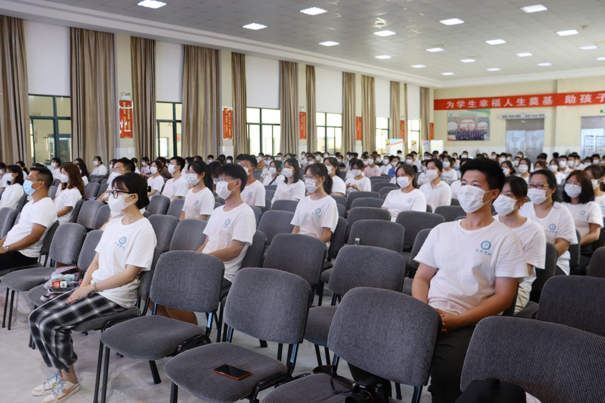 7月3日下午,bat3652022年暑期乡村留守儿童夏令营开营仪式在兴化市戴窑镇兴化乐吾实验学校艺术中心举行。泰州市妇联主席唐银华、兴化乐吾实验学校董事长王华桂、数理学院党总支书记杨俊林等暑期社会实践团队指导老师以及乡村留守儿童参加本次开营仪式。