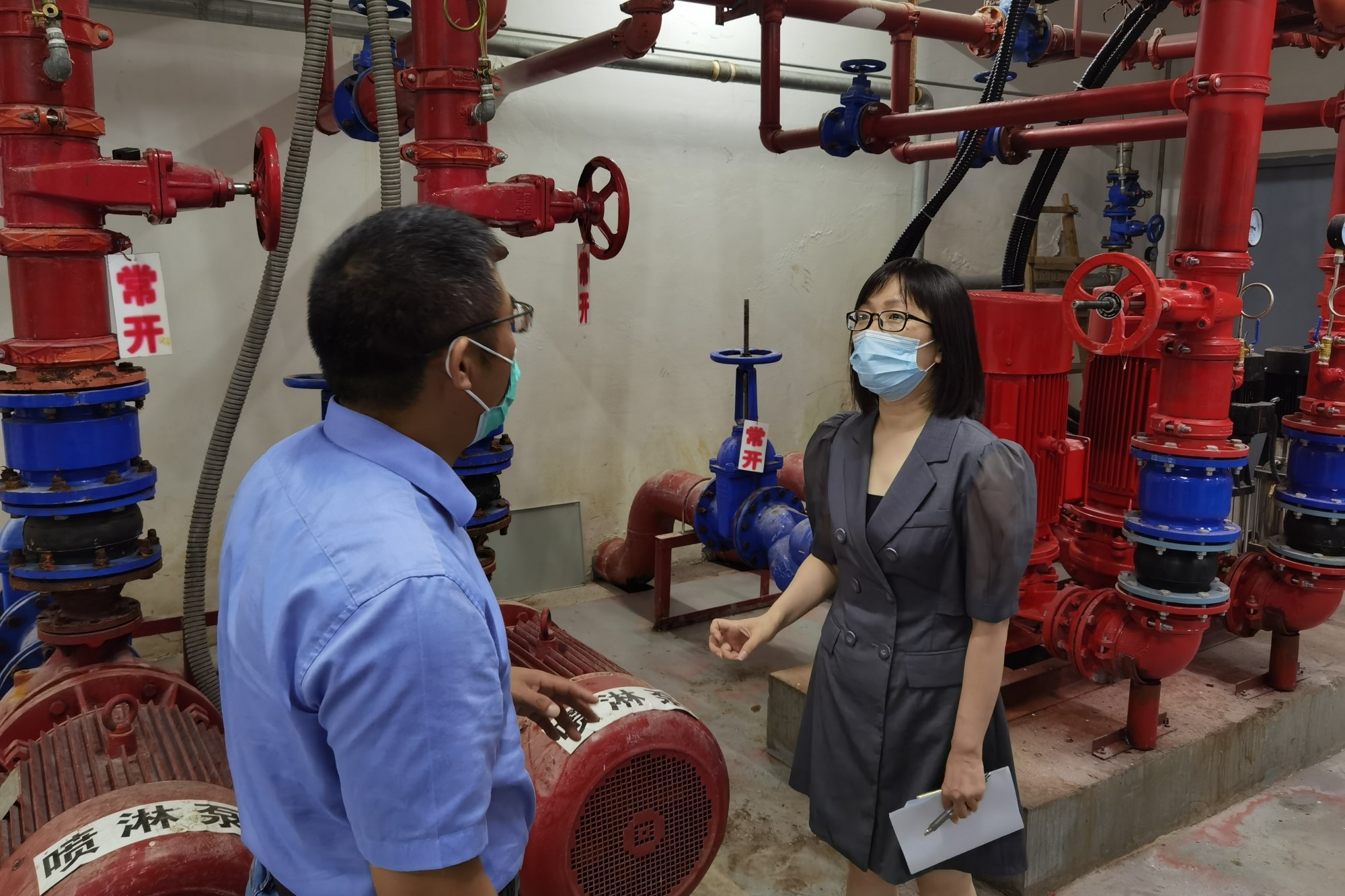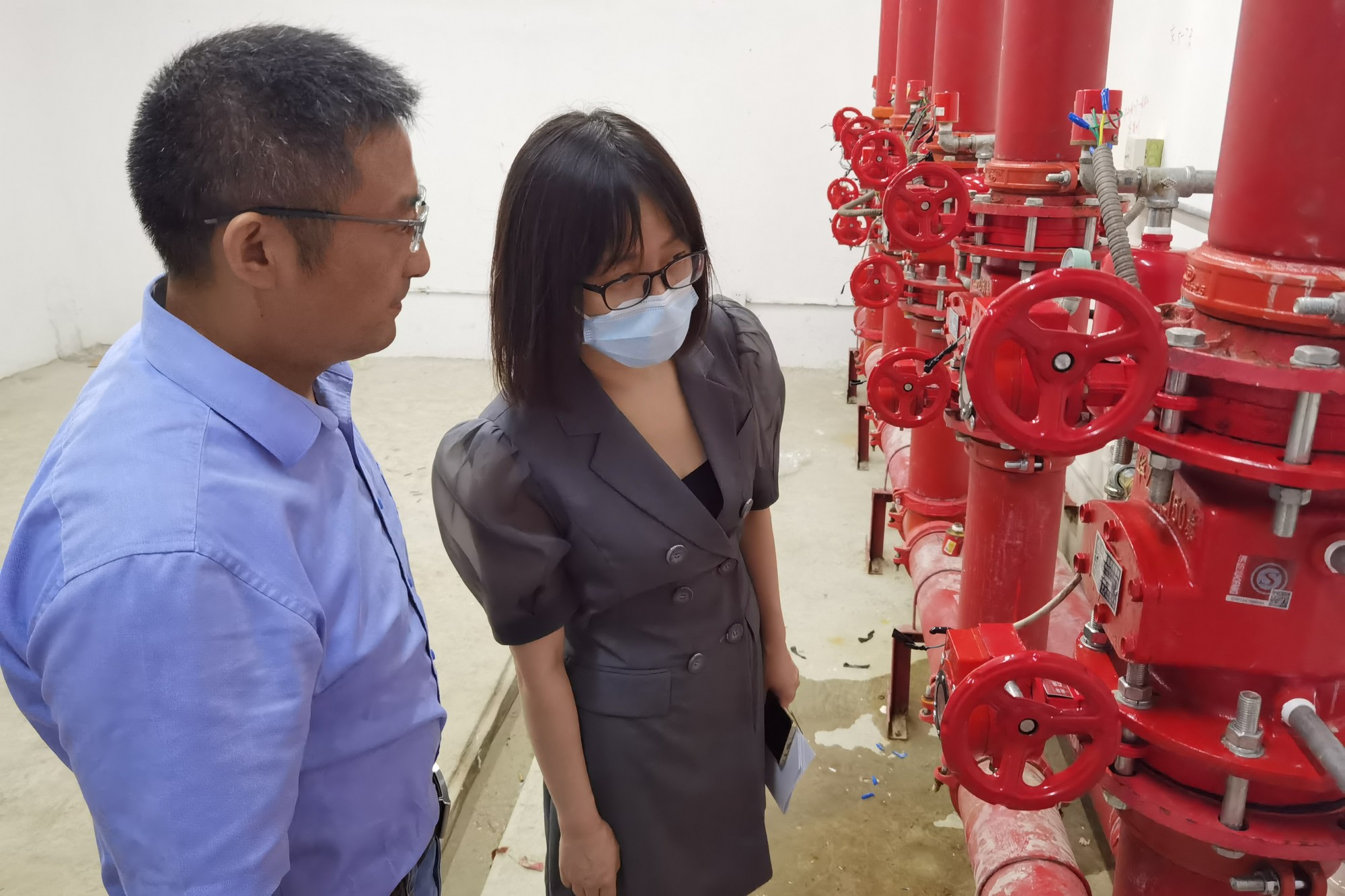 检查组检查了学校东门、西门建筑工地施工通道封闭管理情况,并走进消控室、泵房、风机房、湿式报警阀间、微型消防站等消防重点部位,检查消防设施维修整改情况。