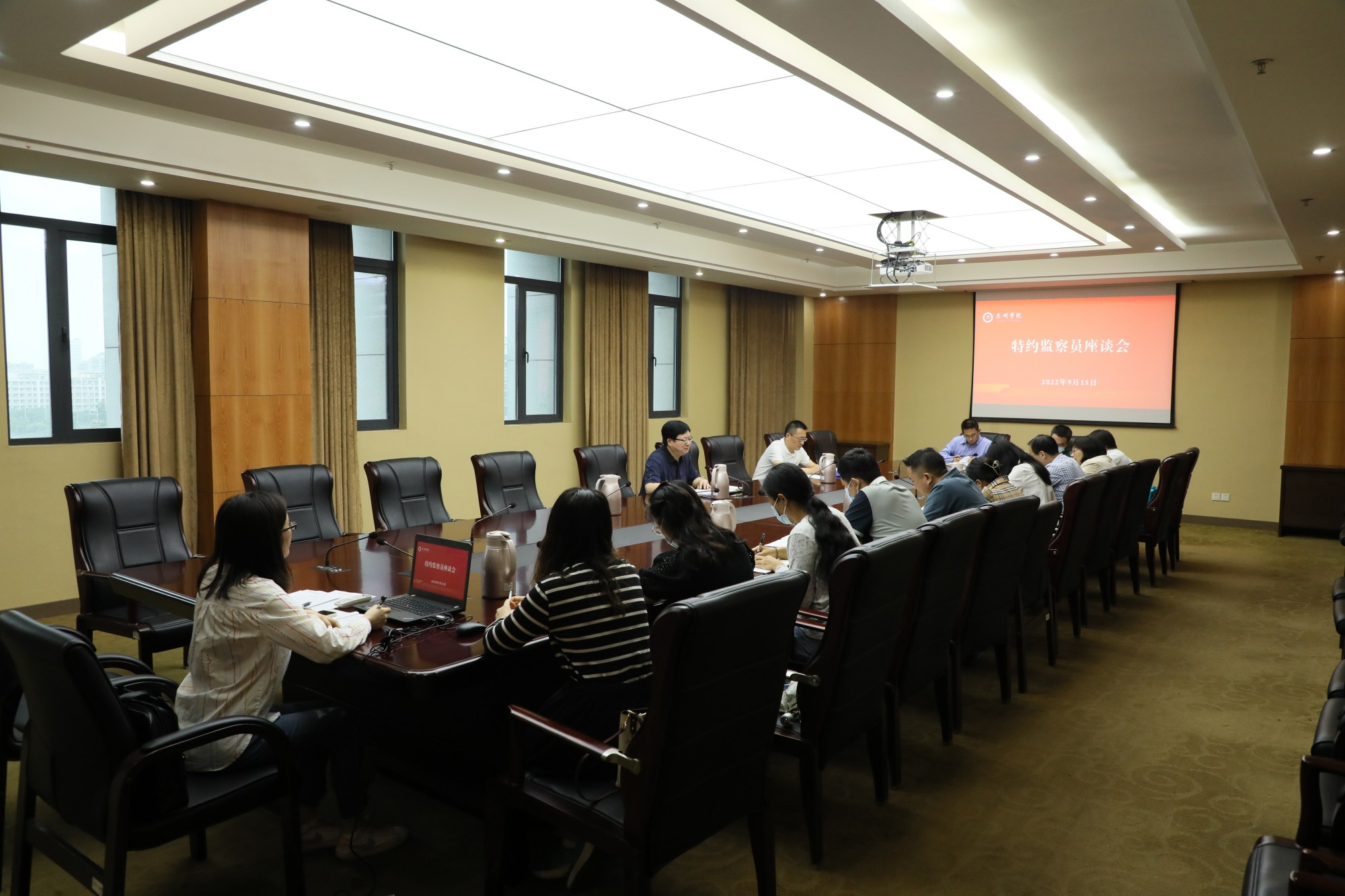 9月15日下午,bat365召开特约监察员座谈会。全体特约监察员、纪委办相关人员参加会议。校党委常委、纪委书记何军主持会议并讲话。