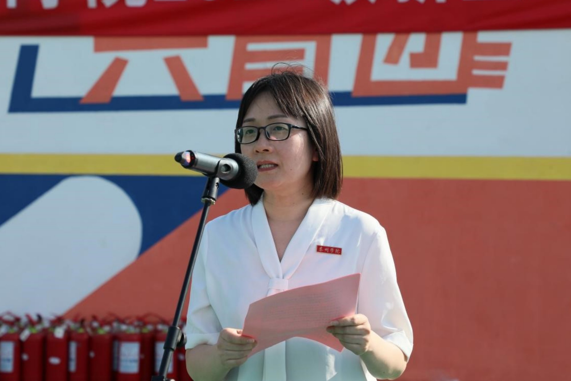 卜慧芬在讲话中对所有新生提出三点要求:一是树牢消防安全意识,二是遵守消防法规制度,三是锻炼疏散灭火能力。她强调,同学们要永远牢记“关注消防、关爱生命”“消防安全、人人有责”,要以主人翁的姿态维护和建设平安校园。