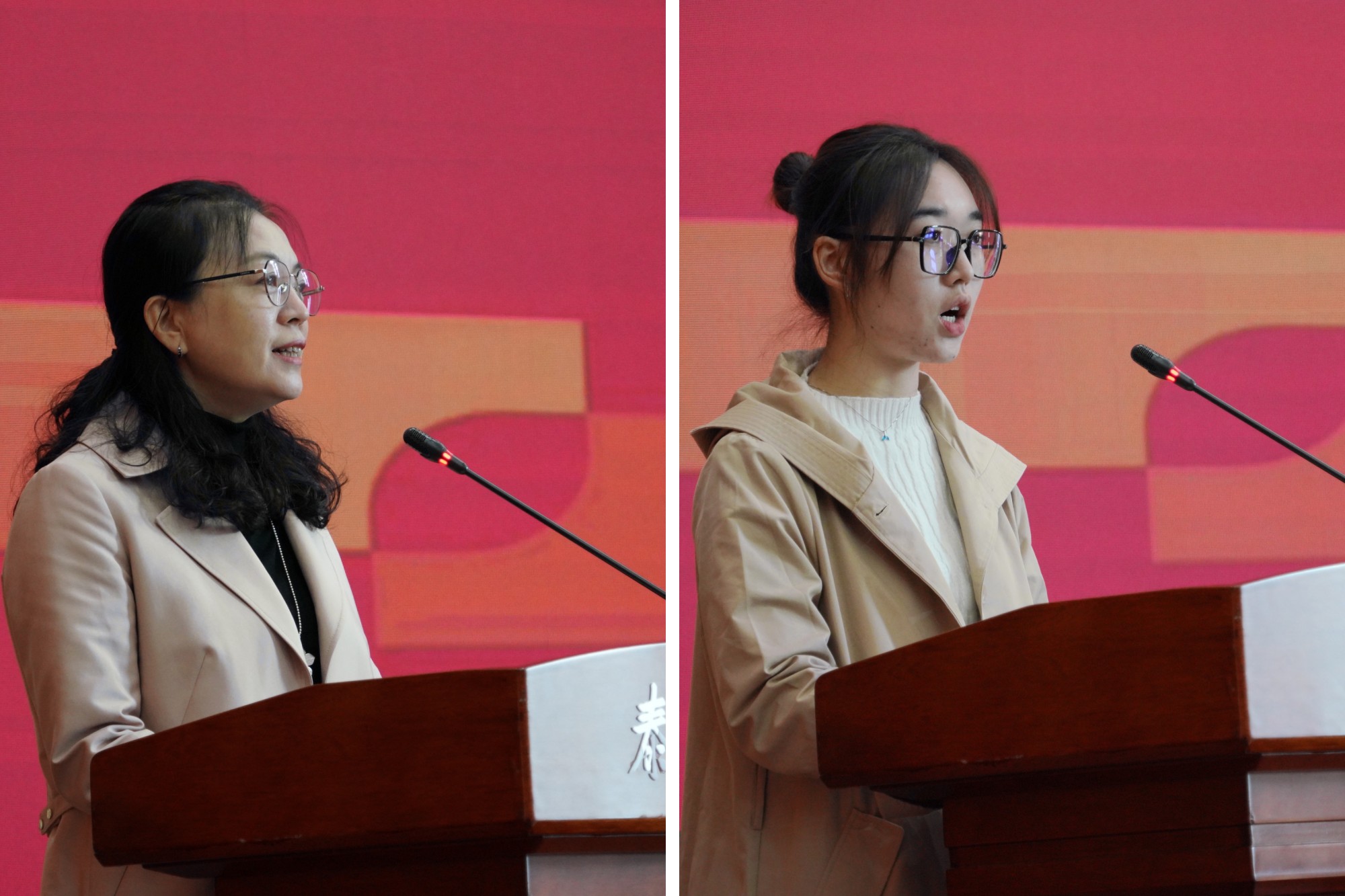 19级音乐学2班杨梦琦同学作为学生代表发言,她充分认识到音乐学师范专业认证既是一种挑战,更是一种历练。她代表全体同学保证他们会以主人翁姿态,积极投入到学院专业认证的各项工作中,以优异的成绩完成师范专业认证的各项技能考查,以实际行动践行校荣我荣的理念。