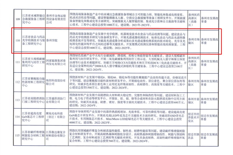 近日,江苏省发展和改革委员会发布《关于同意建设2022年江苏省工程研究中心的通知》,bat365申报的“江苏省食品与药品光学监测技术与装备工程研究中心”成功获批。这是bat365多学科交叉发展、协同建设的阶段性成果,对bat365科研创新平台建设具有重要意义。