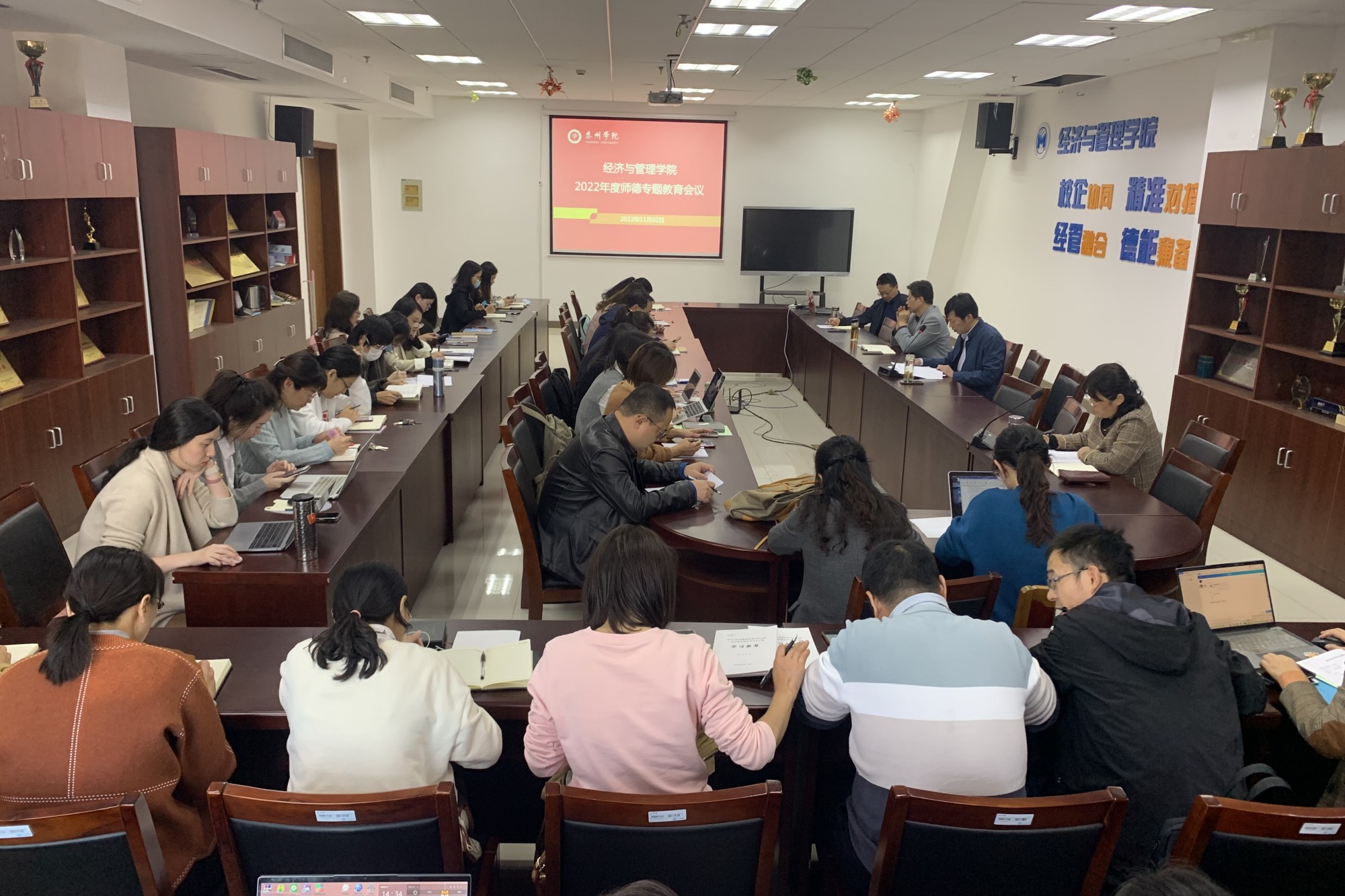 为进一步提高学院师德师风建设工作的系统性、教职员工师德师风修养的自觉性,推动构建教师思想政治建设、师德师风建设、业务能力建设有机统一、相互促进的工作局面,11月2日下午,经济与管理学院召开2022年度师德专题教育会议。院党总支书记徐小兵主持会议,经管学院全体教职工参加。