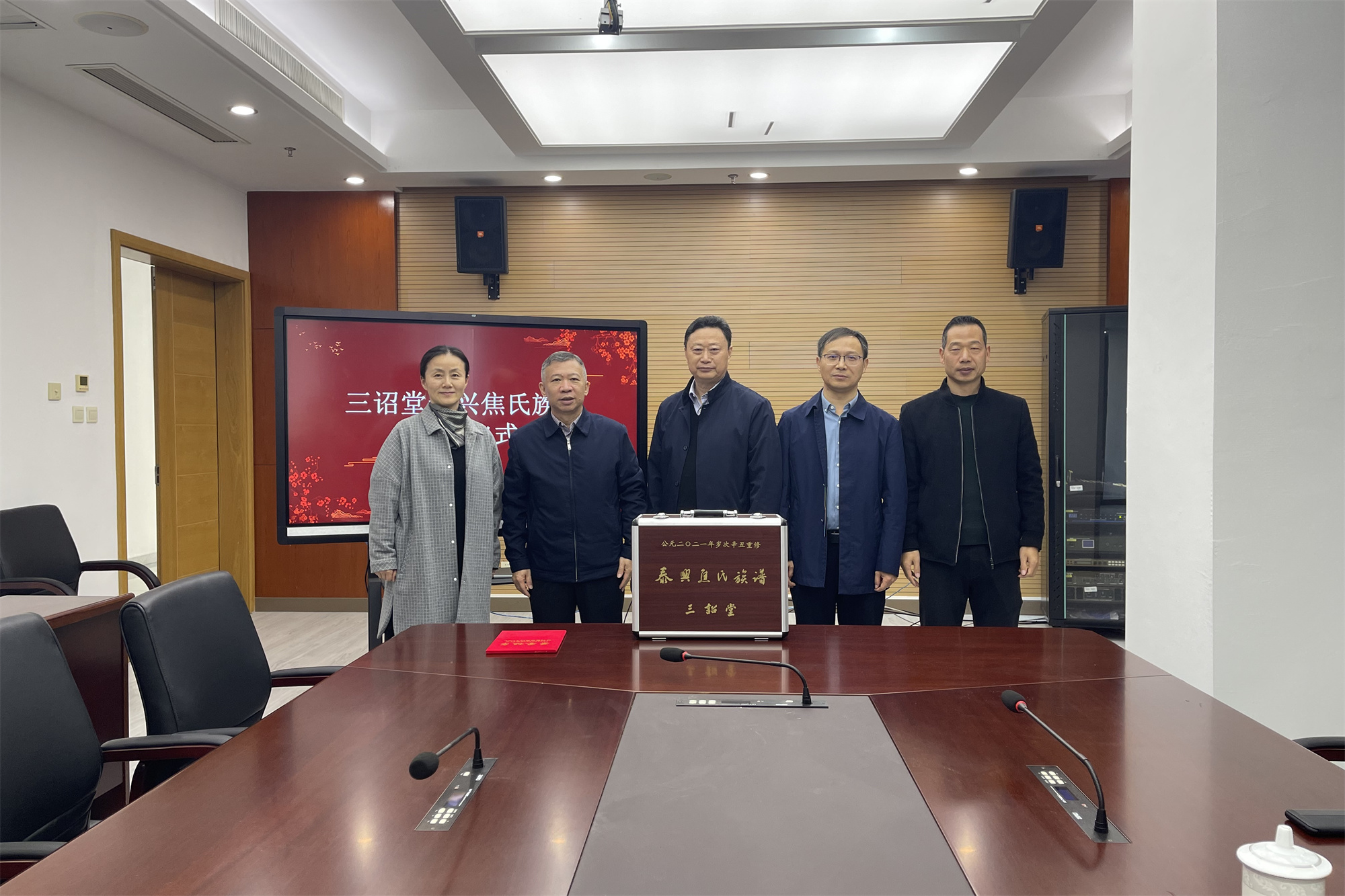 11月16日上午,三诏堂《泰兴焦氏族谱》捐赠仪式在bat365在线中国官网登录入口图书馆举行。原泰州市政协秘书长、焦氏宗亲理事会编纂委员会负责人焦建华,校党委常委、副校长徐庆国,校图书馆及国有资产管理处相关同志出席捐赠仪式。