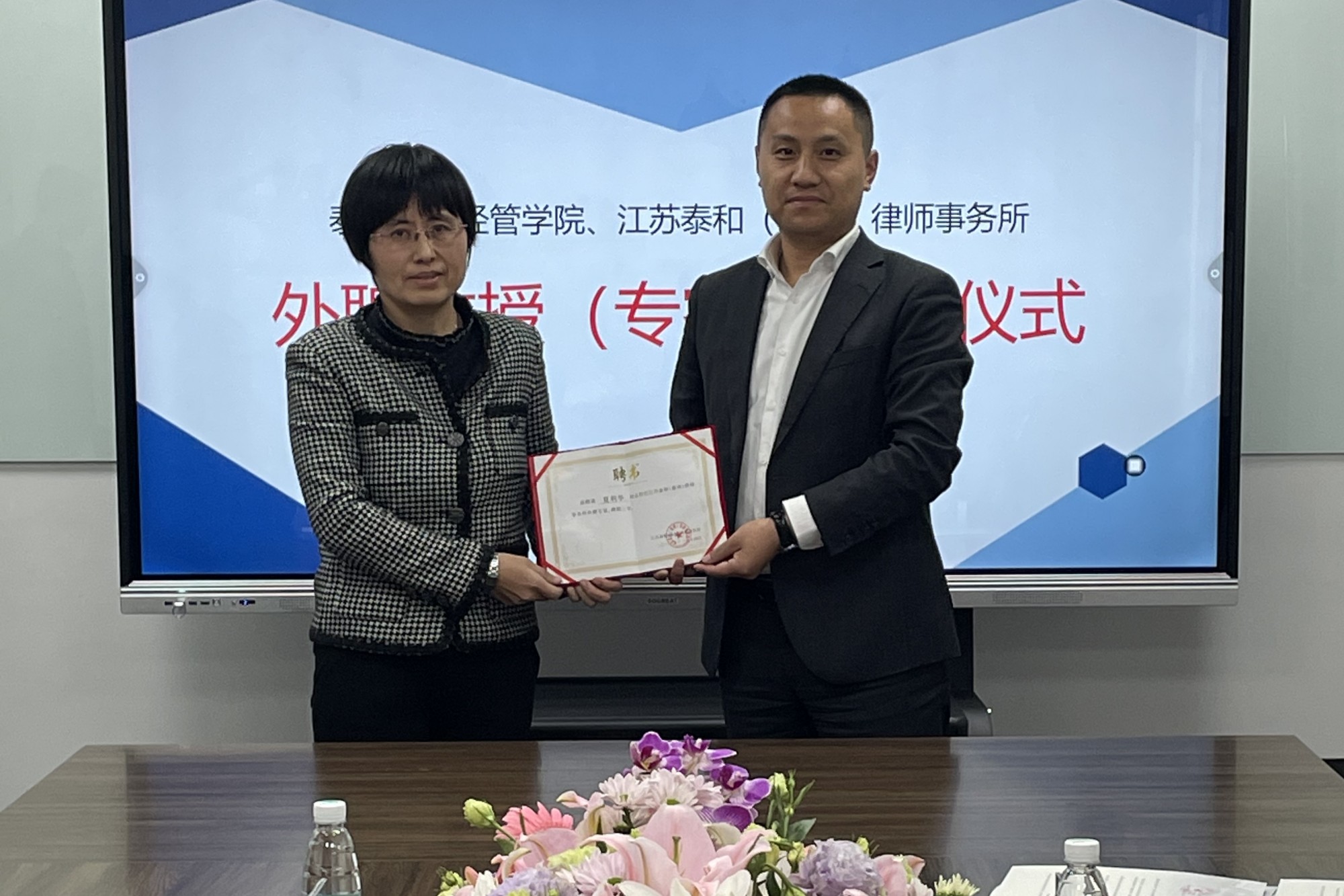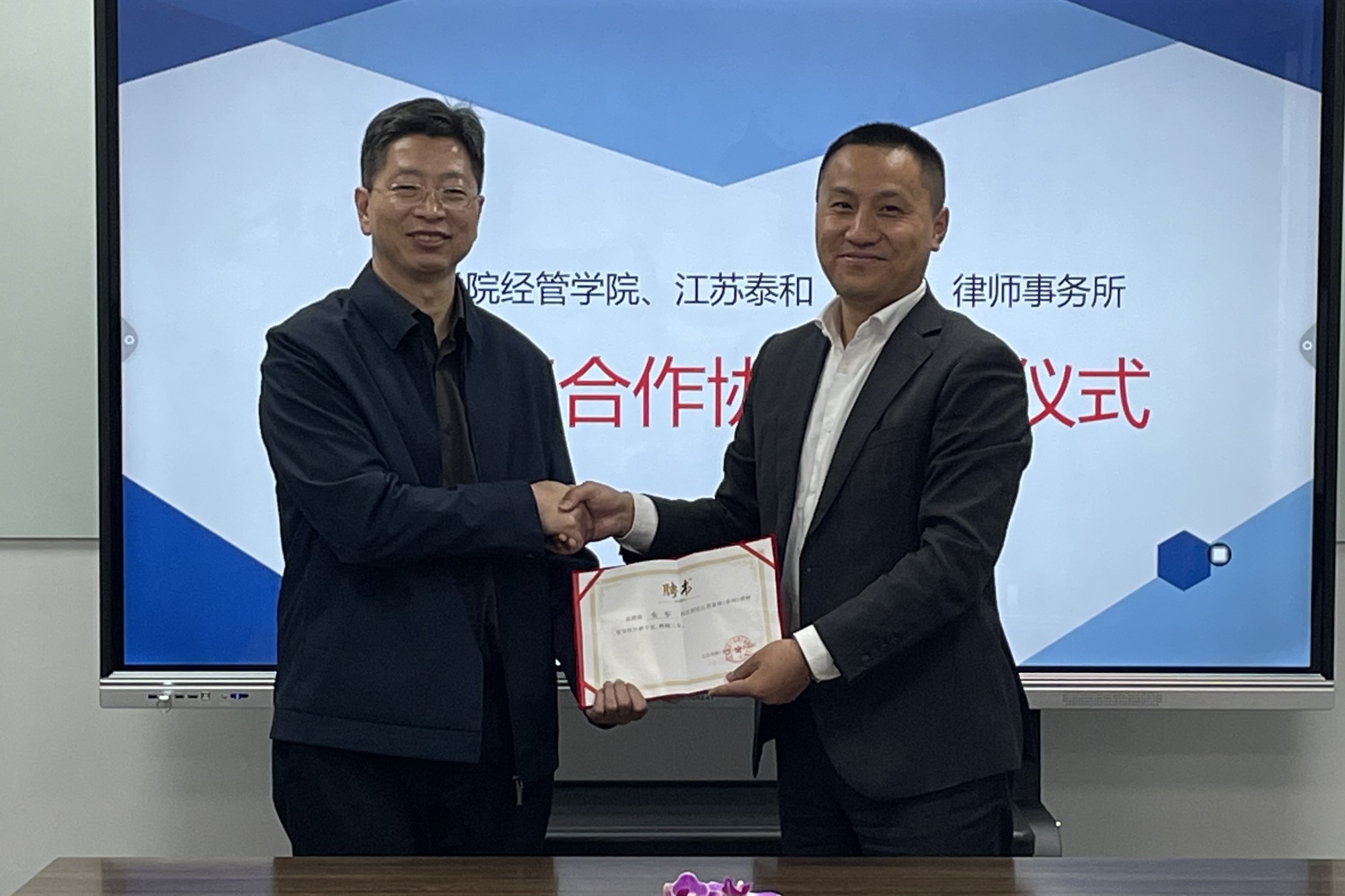双方就产学研项目合作、学生实习就业岗位、学生综合素质培养、普法教育进校园等方面进行了深入探讨。同时,bat365经管学院聘请江苏泰和律师事务所主要合伙人为校外导师,江苏泰和律师事务所聘请经管学院相关教师为外聘专家.