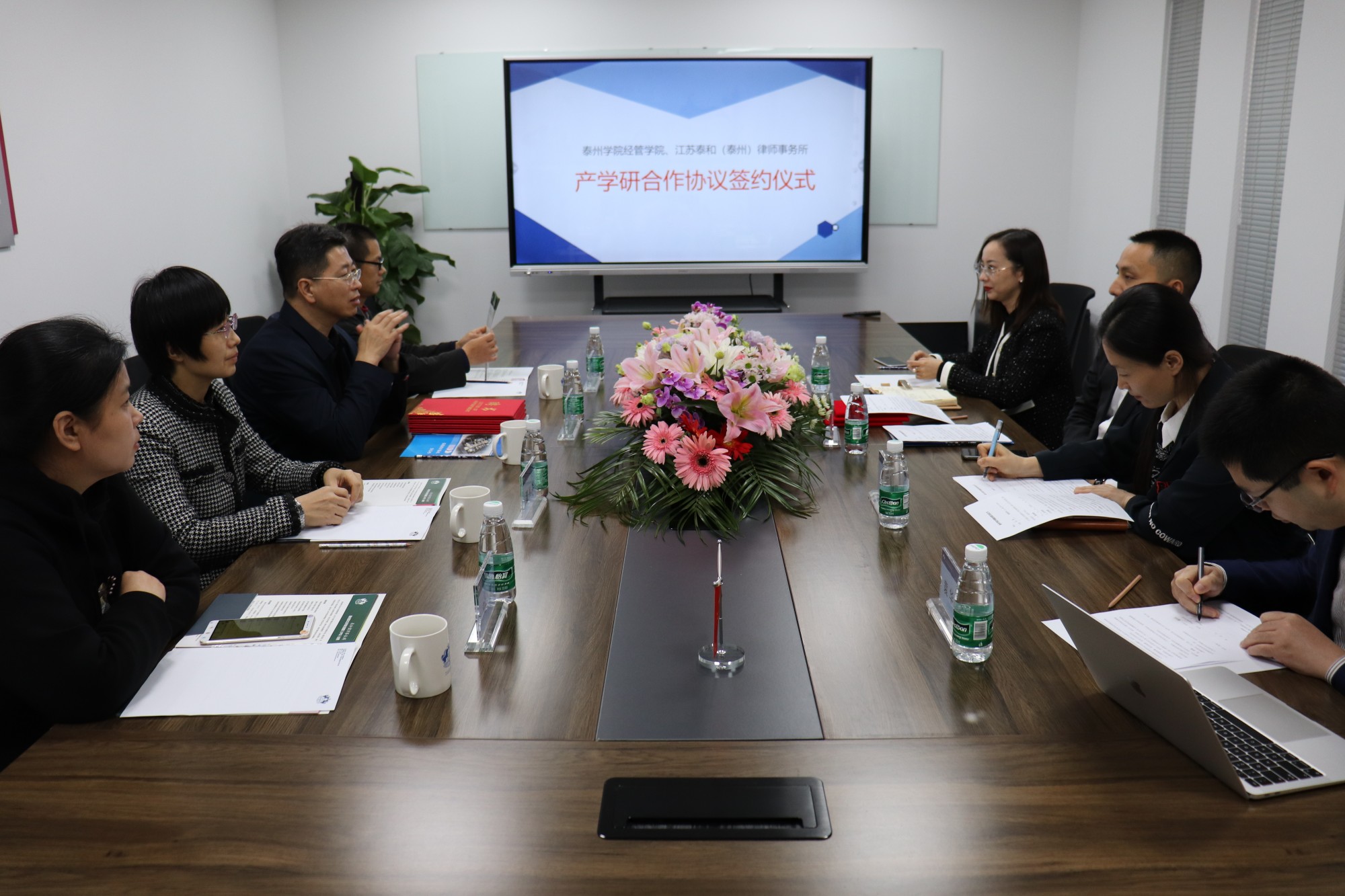 经过前期互访洽谈,11月14日,经济与管理学院院长朱军带队,财务管理专业负责人夏利华教授、财务管理教研室主任刘蕾博士赴泰州医药城与江苏泰和(泰州)律师事务所(以下简称“泰和(泰州)”)签署产学研合作协议。