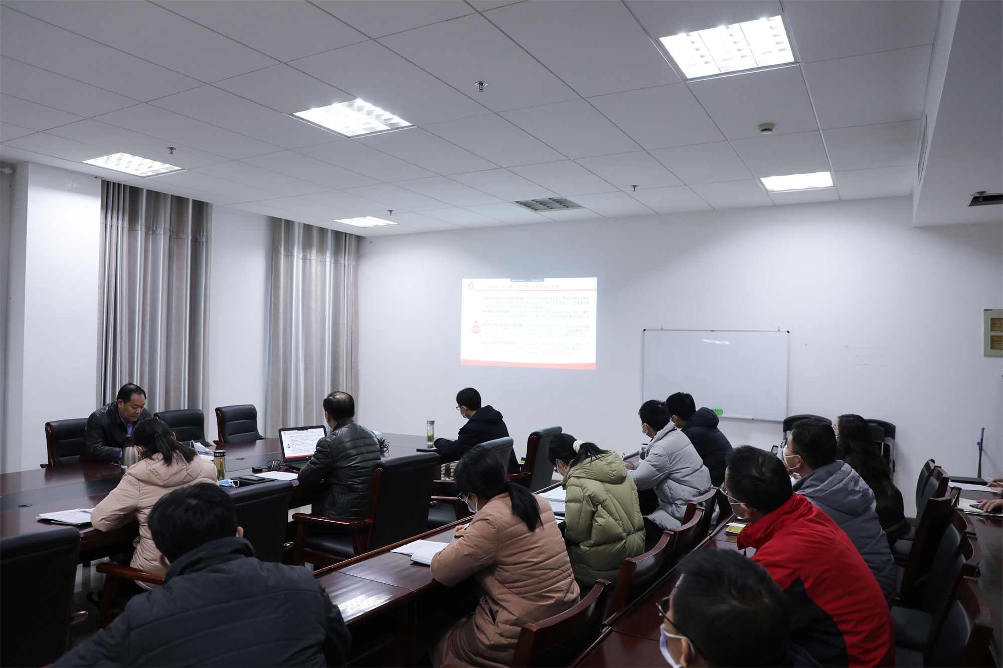 12月14日下午,医药与化学化工学院党总支理论学习中心组在D2226会议室集中学习党的二十大精神,校党委书记徐向明到会指导。院党总支书记高建宁主持会议,院党总支理论学习中心组全体成员参加。