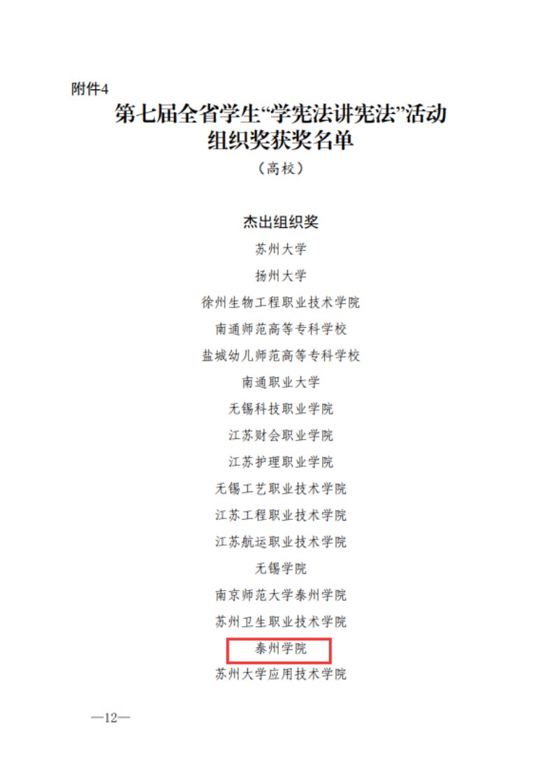 近日,江苏省教育厅公布了第七届全省学生“学宪法讲宪法”活动评选结果,bat365荣获“杰出组织奖”。