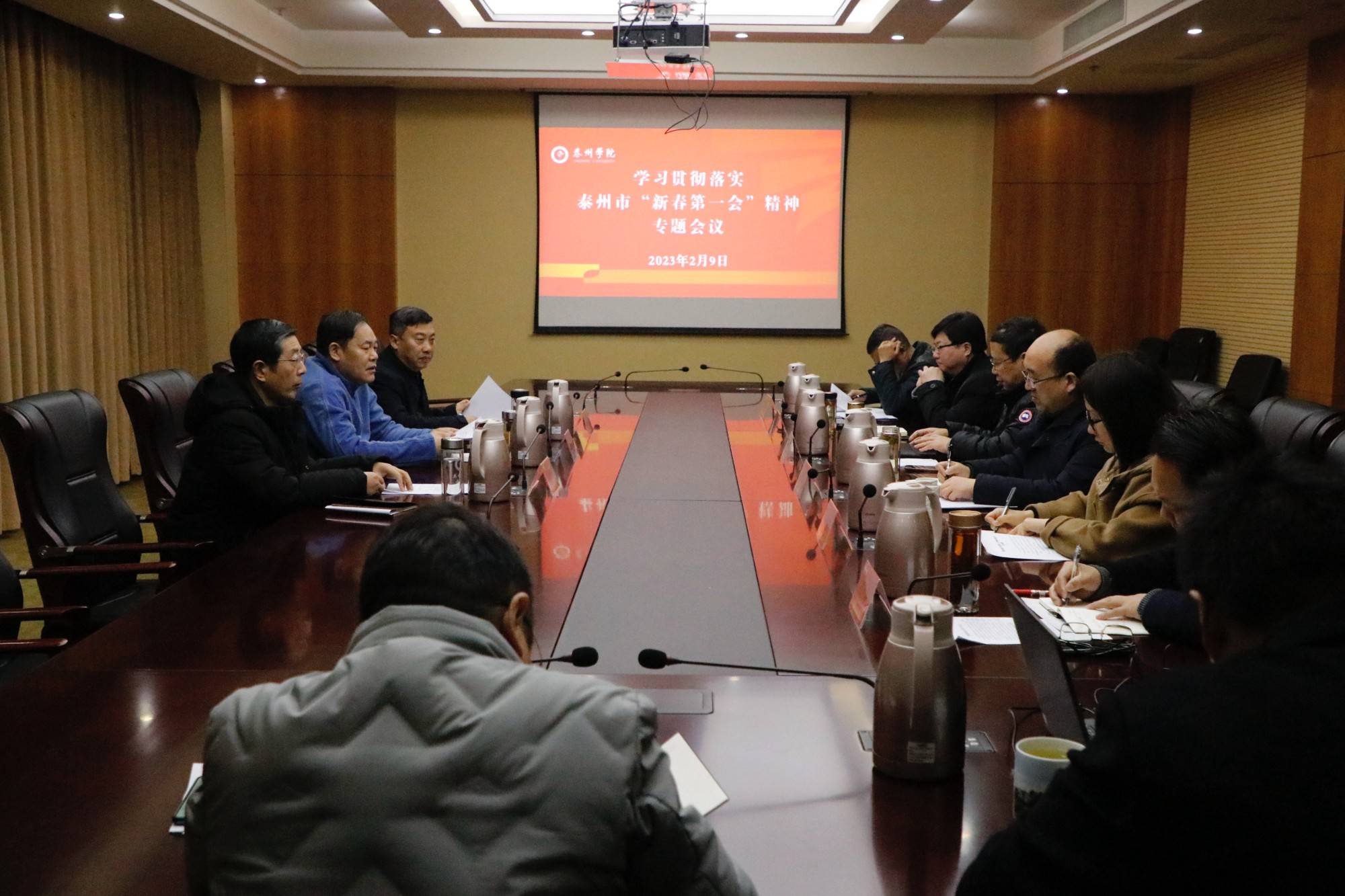 本次会议的主题是学习贯彻泰州市“新春第一会”精神,根据《贯彻落实党的二十大精神推动泰州教育高质量发展行动方案》要求,明确2023年学校重点工作指标,快速推进学校内涵建设,推动学校事业高质量发展。班子成员围绕会议主题,逐一发言,谈了学习“新春第一会”精神的感悟,并结合分管工作,明确了完成2023年重点工作的具体举措,就学校事业发展提出了颇具建设性的意见和建议。