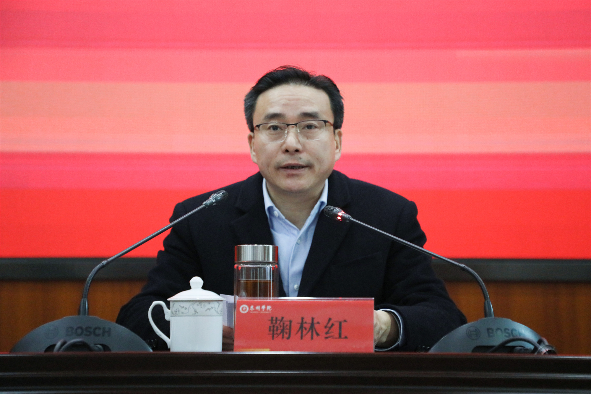 党委副书记、校长季赛代表校行政领导班子作述职报告。他指出,一年来学校行政领导班子以习近平新时代中国特色社会主义思想为指导,坚决贯彻落实党的十九大、十九届历次全会和党的二十大精神,坚持立德树人,加强内涵建设,落实学校第三次党代会精神,科学谋篇布局,准确定向定位,团结带领全体教职员工锐意进取、奋力拼搏,各项事业取得显著成绩。