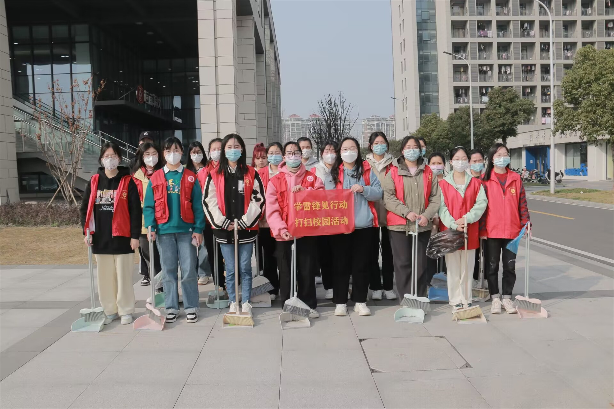 服务校园,践行雷锋精神。团学骨干牵头,在学生宿舍区开展“学雷锋,树新风”募捐活动,收集了大量的衣物、书籍和生活用品,为山区的孩子送去温暖;组织积极分子、发展对象和学生党员,开展“学雷锋,见行动”净化校园活动,清扫校园角落垃圾、小广告,美化校园环境,以实际行动践行雷锋。