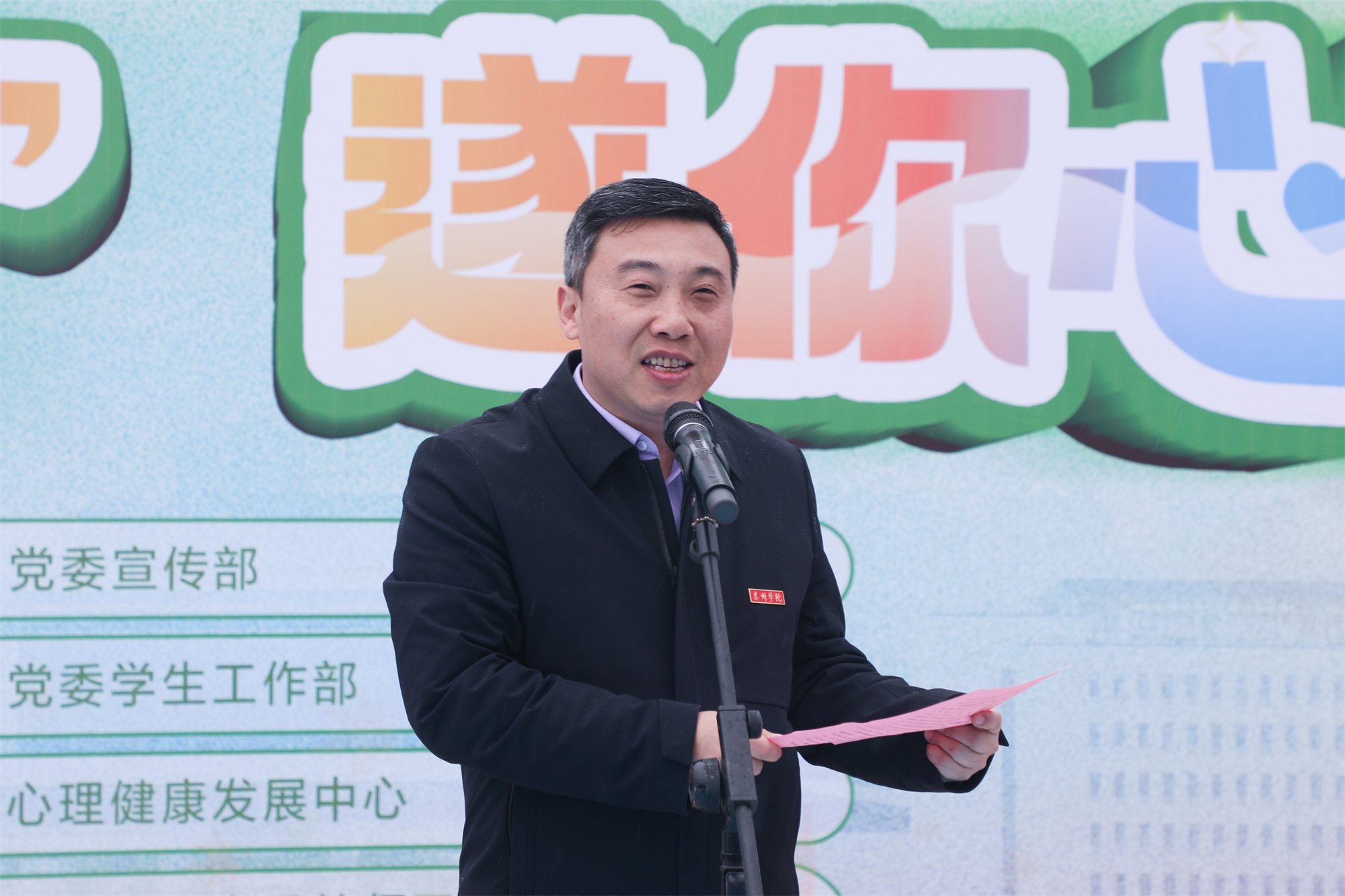 季赛在开幕致辞中指出,心理节的举办是bat365强化“培根铸魂、启智润心”的创新举措,也是构建师生成长共同体的砥砺探索。他希望通过心理节各项活动的开展,激发泰院人的阳光能量,锻炼出一批可信、可敬、可靠的阳光导师,培养出一批乐为、敢为、有为的阳光学子,师生同心、微光成炬,共同汇聚奋发向上的力量。