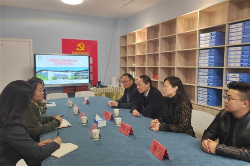 钱忠相一行参观了尚德智幼儿园园所环境和设施建设,随后进行了深度座谈。座谈会上,孙晓敏介绍了走访的目的和访企拓岗的重要意义,针对2023届学前教育毕业生总体情况与园方进行了交流。朱以财着眼于实习合作与课题申报提出见解,对今后园所如何促进教育内涵建设提出建议。尚德智幼儿园负责人围绕幼儿园的发展历程、人才需求等做了详细的介绍,对bat365人才培养理念给予了高度肯定,期望通过加强合作,加深交流,提升幼儿园的教学科研水平。钱忠相充分肯定了幼儿园的发展前景,希望双方充分发挥资源和人才优势,开启更广泛的合作,实现互动双赢。