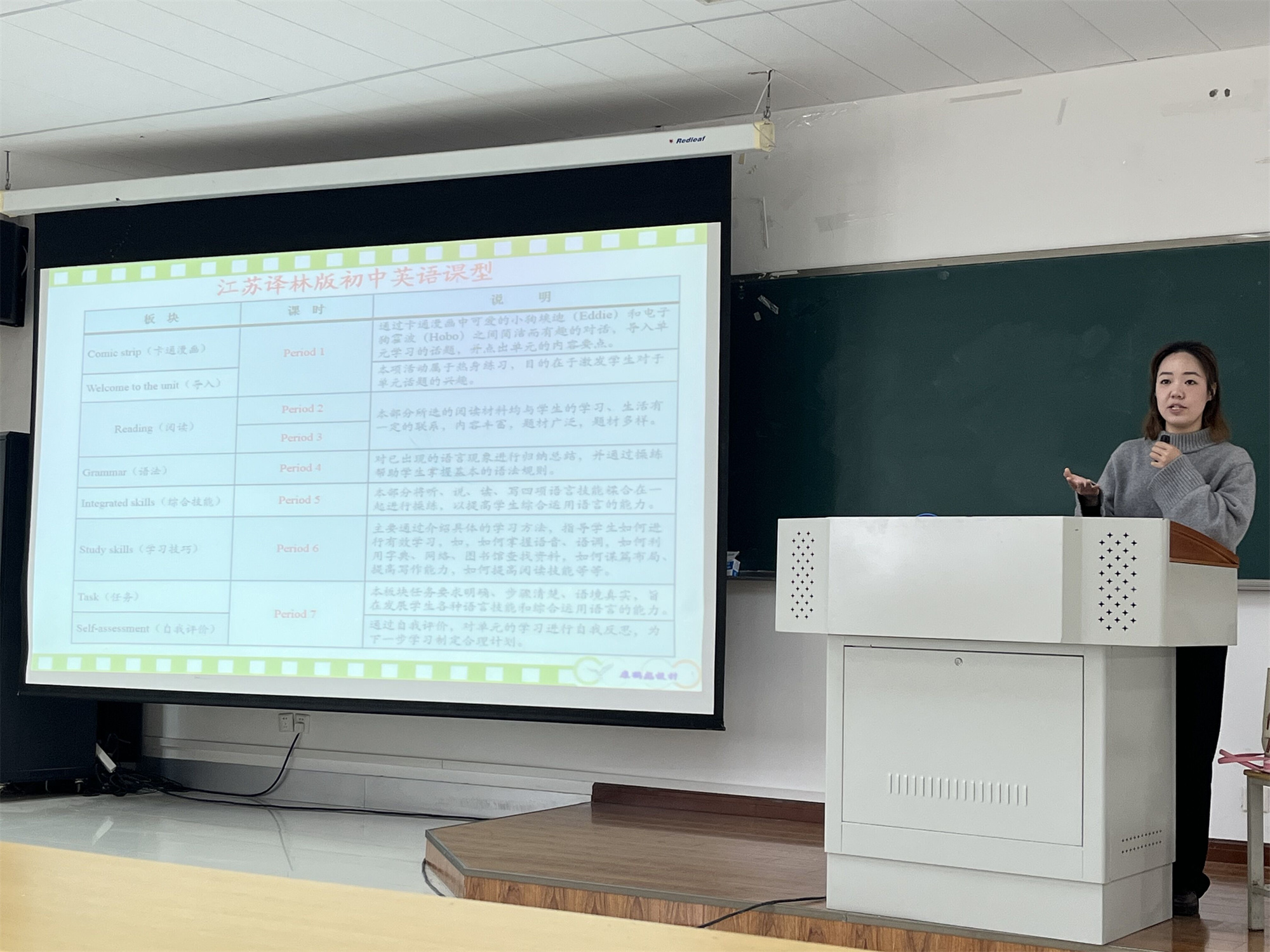 季蕾首先对译林版初中英语教材编写框架以及各种课型进行了分析,然后结合具体课例,从单元教学中的七种不同课型的讲授要领入手,细致讲解了设计不同课型教学内容时的注意要点及详细的操作步骤。季蕾曾在江苏省青年教师教学基本功大赛中多次取得佳绩,讲座中她也分享了个人丰富的参赛经验,为英语师范专业毕业生参加考编和入职后从教提供了有益的借鉴。