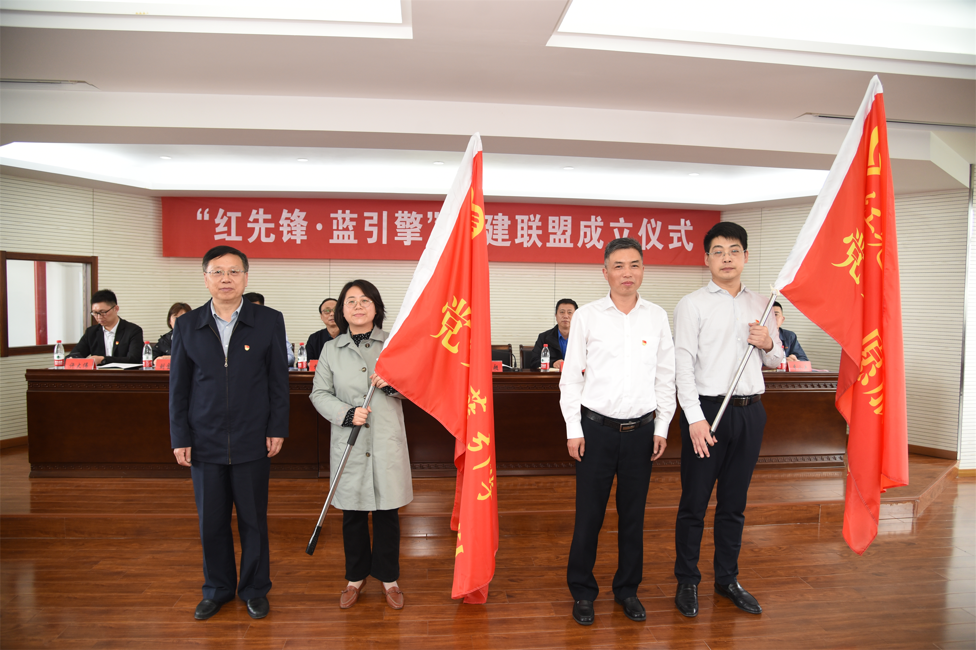 4月19日,bat365机电工程学院党总支、海陵区科技局党支部及江苏罡阳控股集团、江苏泰丰泵业有限公司、泰州海田电气制造有限公司等7家企业党组织共建的“红先锋·蓝引擎”党建联盟成立仪式在海陵区科技局隆重举行。机电工程学院党总支书记陈克宏,海陵区科技局党组书记、局长王元昶,联盟成员单位的相关领导、党员代表参加了成立大会。