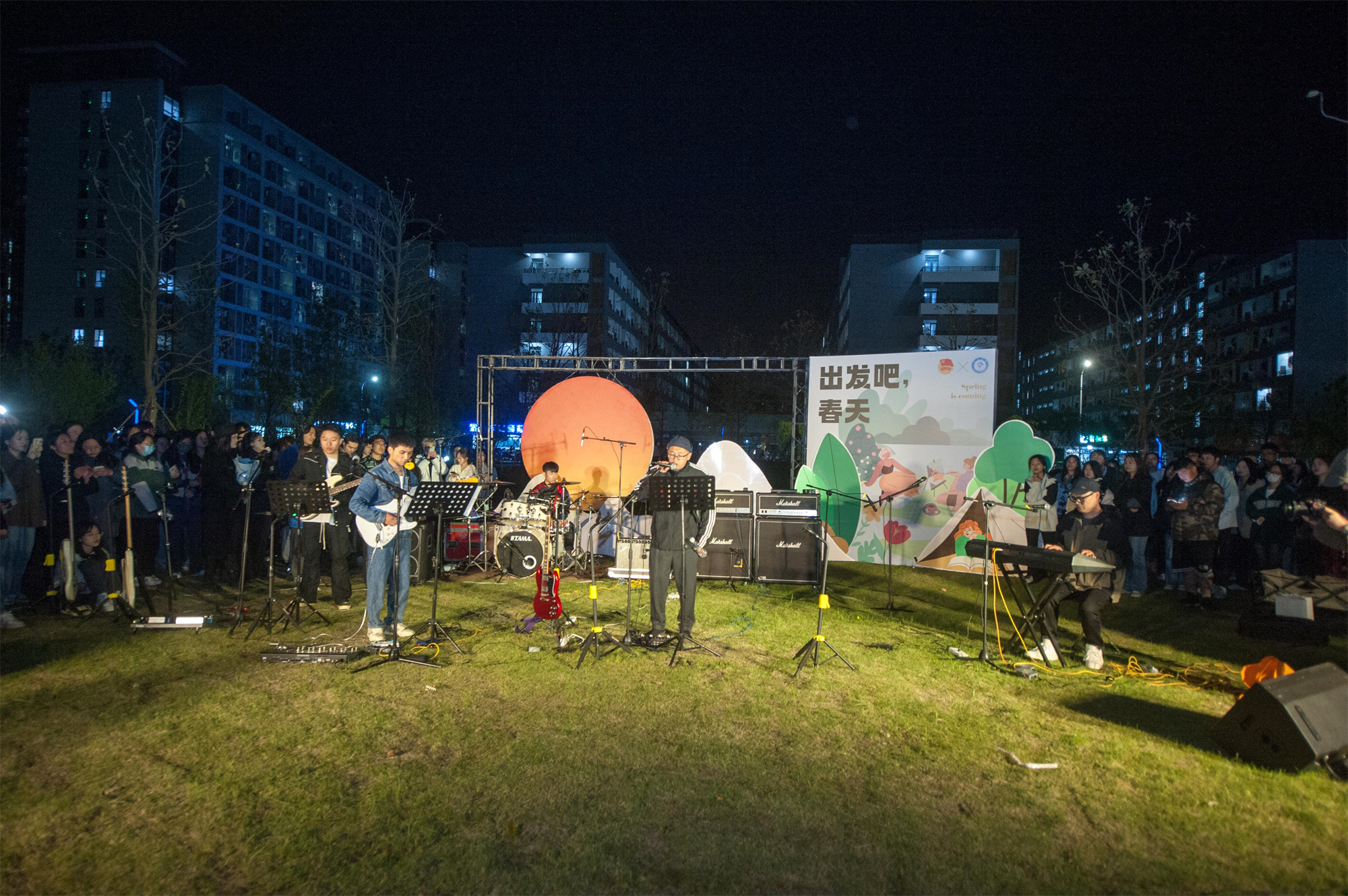 19时,“出发吧,春天!” 主题草地音乐会在青春广场开始,808乐队、城南柒乐、橡树、息痛、教师乐队登台演出,音乐形式众多,有流行音乐、摇滚、民谣等。众多音乐爱好者和数百名学生齐聚草地,大家以草地为席,以星空作幕,欢声高唱。全场气氛在教师乐队《济川东路的日子》的演出中达到高潮,在场的每个人借着诚挚的歌声,感恩相遇泰院。