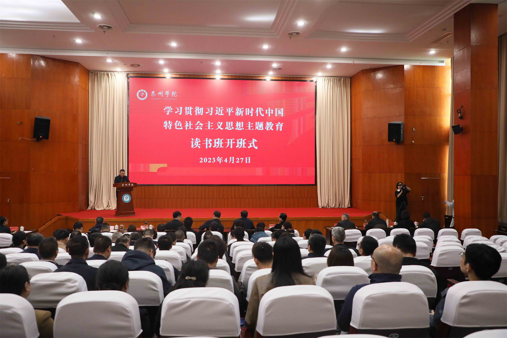 为持续、深入、高质量开展学习贯彻习近平新时代中国特色社会主义思想主题教育,按照省委统一部署,根据学校主题教育总体安排,4月27日下午,bat365在胡瑗讲堂举行学习贯彻习近平新时代中国特色社会主义思想主题教育读书班开班式。校主题教育领导小组组长、党委书记徐向明作开班动员讲话,省委第23巡回指导组副组长、南京工业大学党委副书记吴胜红,指导组成员、省教育厅高等教育处四级主任科员王伟到会指导。开班式由校主题教育领导小组副组长、校党委副书记、校长季赛主持。全体校领导、中层干部参加开班式。