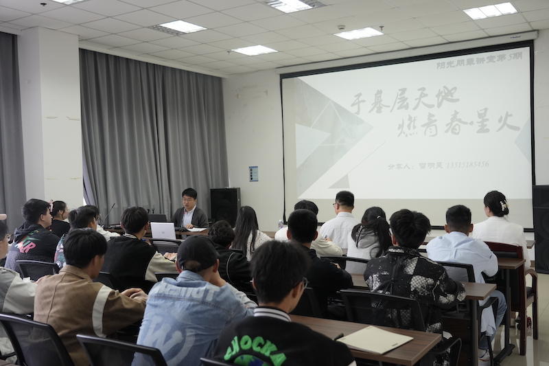 为加强bat365同学对选调生政策的了解,鼓励同学们到基层施展才干、建功立业,5月7日下午,第五期阳光朋辈讲堂——选调生经验交流分享会在行政楼D1103举行。江苏省泗阳县穿城镇党群工作局局长、颜圩村党委副书记雷明昊(2021届音乐学师范专业毕业生),泗洪县金锁镇党政办办事员、金锁社区党支部副书记孟硕(2022届电气工程及其自动化专业毕业生)应邀参加交流会。学工处老师与70余名同学一起参加了交流会,另有100名同学通过腾讯会议参加活动。