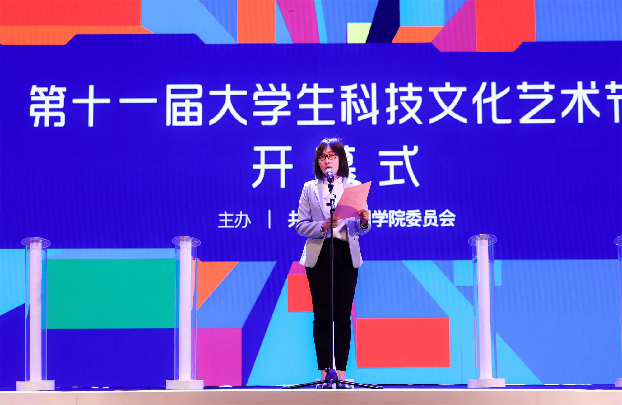 卜慧芬致开幕辞,对本届大学生科技文化艺术节的举办表示热烈祝贺,向认真组织和积极参与的广大师生员工表示衷心感谢。卜慧芬指出,多年来,学校始终把丰富校园文化内涵、提升校园文化品位作为不懈努力的目标,努力办好一年一度的大学生科技文化艺术节,精心打造独具特色的校园文化品牌,取得了丰硕的育人成果和良好的社会效应。卜慧芬希望,同学们要坚定爱国理想,与祖国同心追梦;要练就强国本领,与祖国同心奋斗;要践行报国志向,与祖国同心担当,一起在奋斗中书写精彩的青春华章!