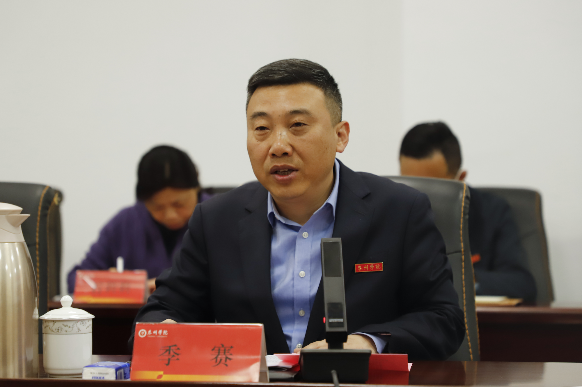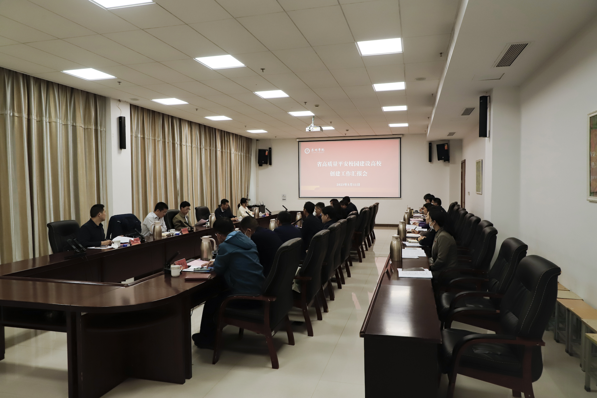 上午9时,考核验收工作汇报会在行政楼D2109召开。校党委副书记、校长季赛,校党委常委、副校长卜慧芬,市教育局四级调研员赵国全,市公安局内保支队支队长李勇出席汇报会。学校保卫处等相关部门主要负责人参加汇报会。