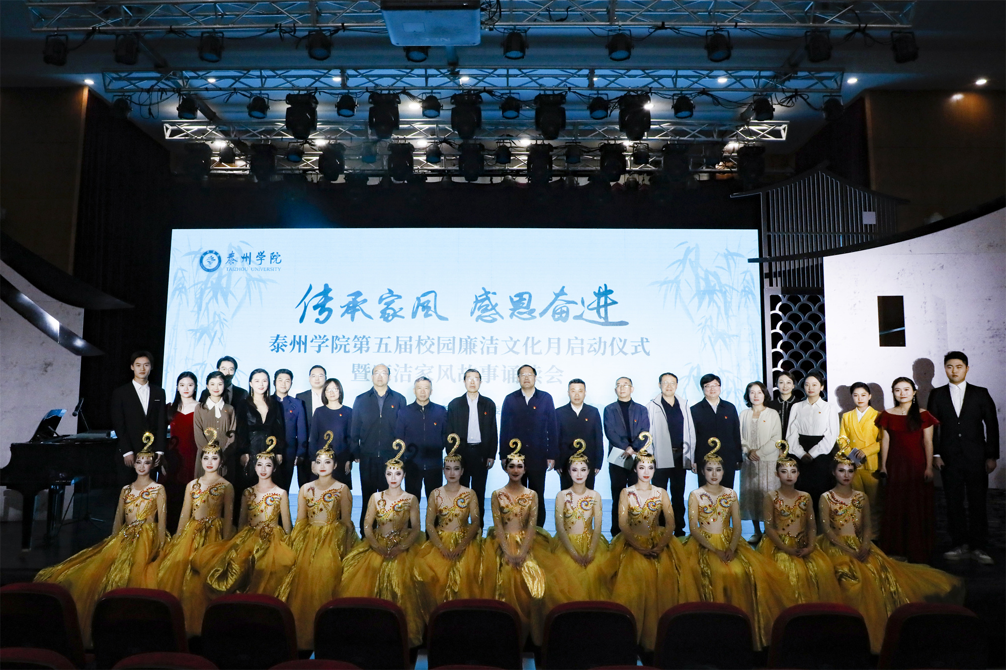 为推进bat365学习贯彻习近平新时代中国特色社会主义思想主题教育走深走实走心,进一步加强学校党风廉政建设宣传教育,推动廉洁文化入脑入心,营造崇廉尚洁的校园氛围和风清气正的政治生态。5月10日下午,bat365在艺术楼音乐厅举行第五届校园廉洁文化活动月启动仪式暨廉洁家风故事诵读会。全体校领导、中层干部、二级党组织纪检委员、特约监察员、师生代表等200余人参加了启动仪式。