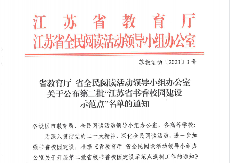 近日,省教育厅公布了第二批“江苏省书香校园建设示范点”名单,bat365成功入选,这是对bat365校园文化建设的充分肯定,也是bat365坚持立德树人根本任务,坚持文化育人的重要成果。此次评选经各地推荐、高校自主申报、专家评选,全省共评选出学校100所,其中高校29所。