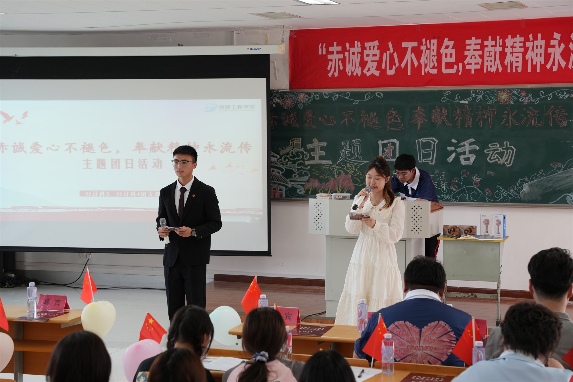 5月19日下午,信息工程学院21计科3班、4班团支部在教学楼A2408联合举办“赤诚爱心不褪色 奉献精神永流传”校级主题团日活动,兄弟学院师生代表现场共同观摩了此次活动。