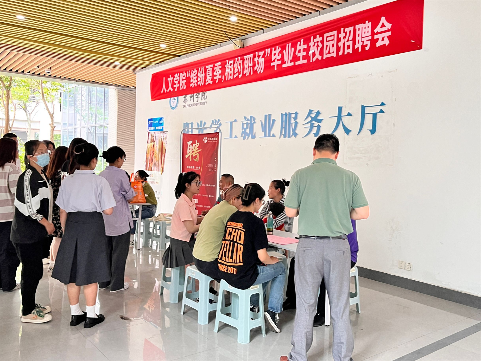 为促进2023届毕业生顺利就业,6月1日下午,人文学院在教学楼阳光学工就业服务大厅举办“缤纷夏季,相约职场”毕业生校园招聘会。