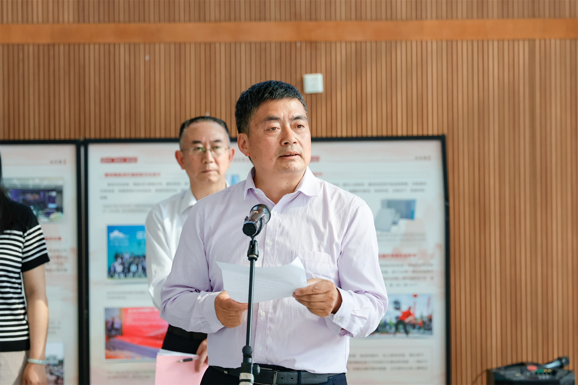 申万霞就展览筹备情况进行简要介绍:本次展览分为“强、富、美、高”4个专题,共设23个展板,集中展示泰州经济社会的发展跨越和非凡成就,定格泰州奋进新征程的坚定步伐。