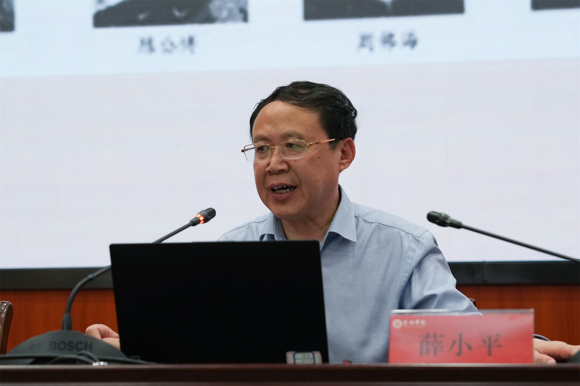 薛小平勉励广大师生要通过主题教育期间的系统学习,不断汲取奋进力量,坚定团结在党的旗帜下,凝结成“一块坚硬的钢铁”,心往一处想、劲往一处使,矢志不渝沿着中国式现代化这条光明大道走下去,为实现中华民族伟大复兴贡献自己的青春力量。