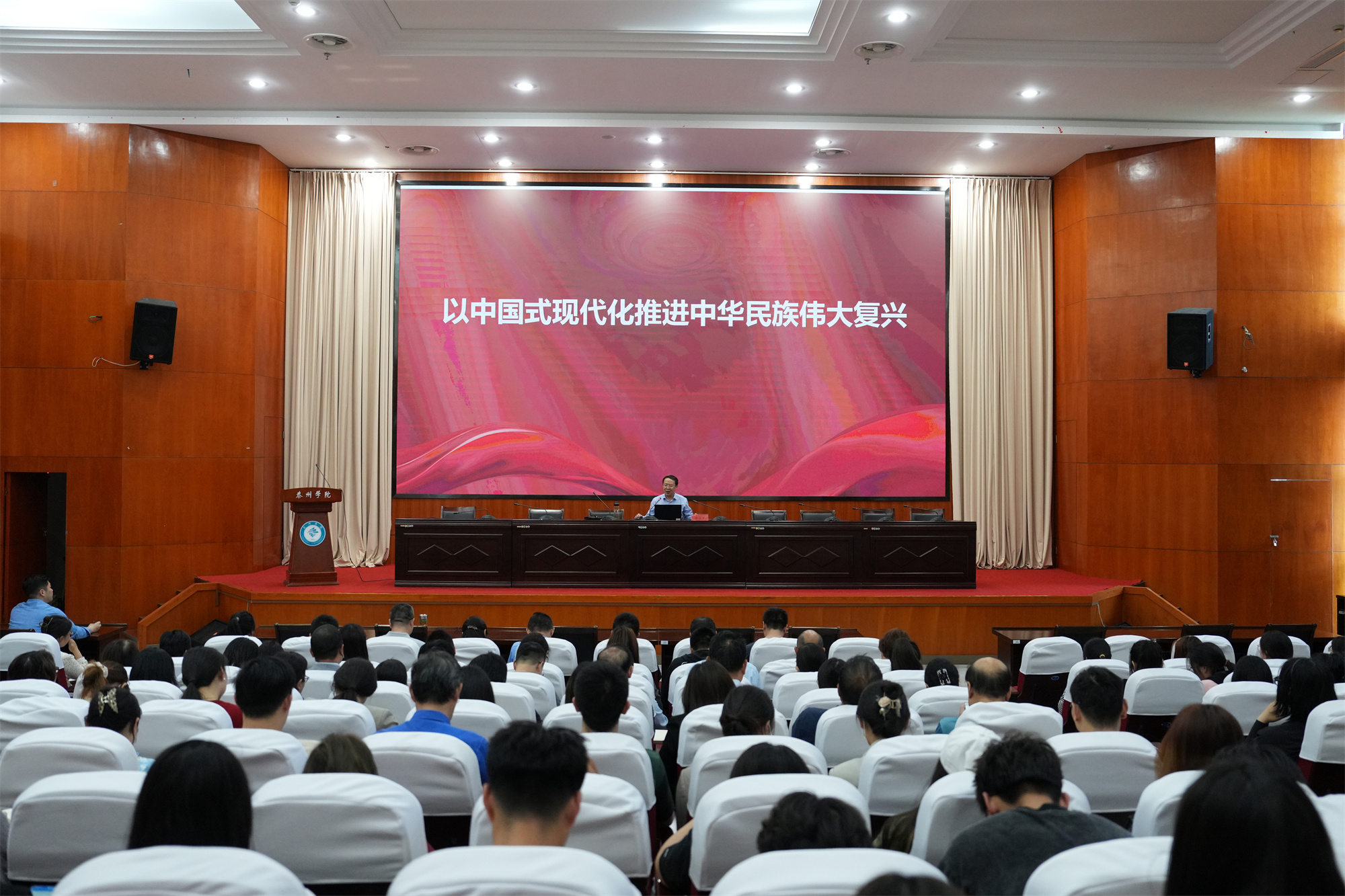 6月6日,党委常委、副校长薛小平为党员师生代表讲授题为《以中国式现代化推进中华民族伟大复兴》的主题教育专题党课。科研处、人事处、国际合作与交流处、人文学院、美术学院全体党员、发展对象和积极分子代表共160余名师生参加学习。