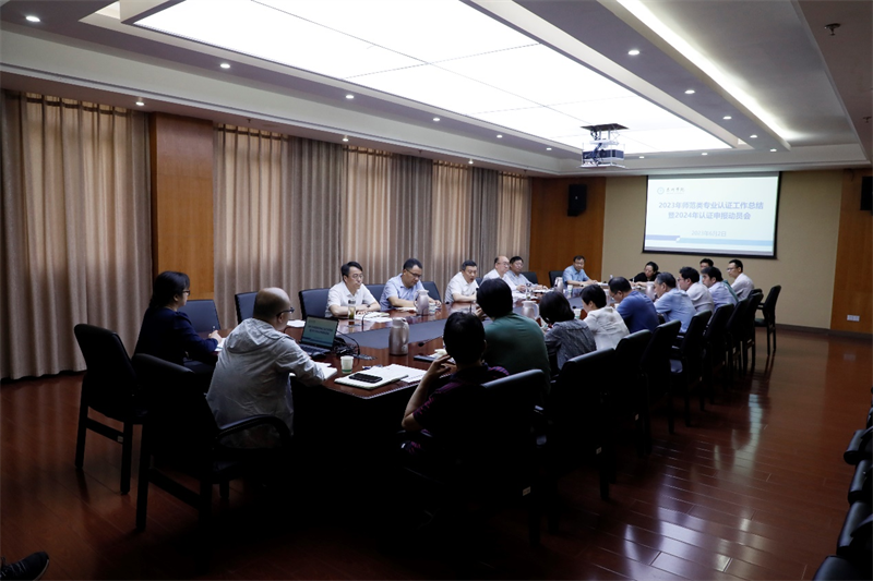 为深入推进bat365师范类专业第二级认证,切实践行“学生中心、产出导向、持续改进”教育理念,6月2日上午,学校在行政楼D1505会议室召开2023年师范类专业认证工作总结暨2024年认证申报动员会。校党委副书记、校长季赛,党委常委、副校长沈荣鑫,教务处、学工处、教育教学评估中心、师范教育中心等相关职能部门负责人,7个师范专业所在学院领导班子全体成员参加会议。会议由沈荣鑫主持。