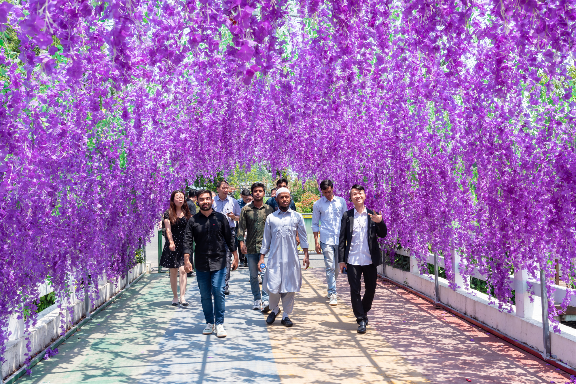 留学生参观了泰州市新能源产业园区和“太阳里”城市客厅,沉浸式体验光伏全场景示范应用;走进海陵一道新能源企业,了解光伏全产业生产链;走进香草湾薰衣草主题庄园,感受美丽乡村风光。