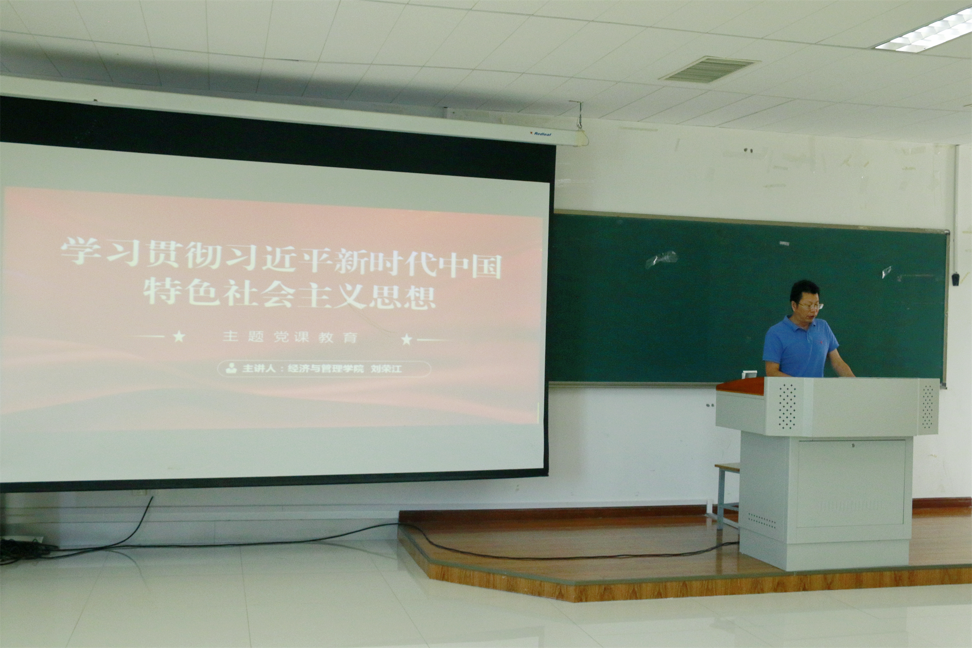 为深入开展学习贯彻习近平新时代中国特色社会主义思想主题教育,6月9日下午,经济与管理学院党总支书记刘荣江在教学楼A2408为学生讲授题为《学习贯彻习近平新时代中国特色社会主义思想》的主题教育专题党课。经管学院党员学生、积极分子和学生骨干参加学习。
