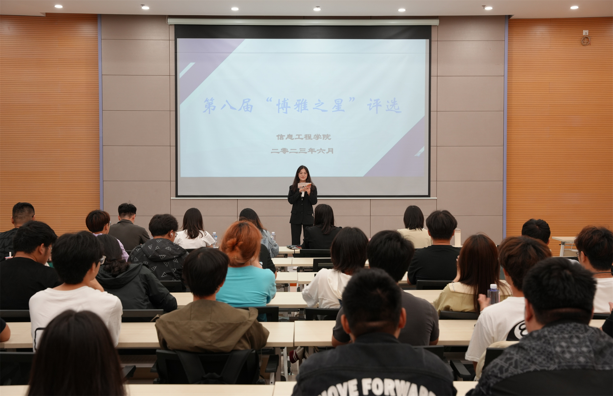 为充分发挥学生先进典型的朋辈榜样作用,6月12日晚,信息工程学院在图书馆1703举办“博学笃志 骛雅逐知”博雅之星评选活动。活动邀请兄弟学院团总支老师和学院辅导员、班主任老师担任评委。