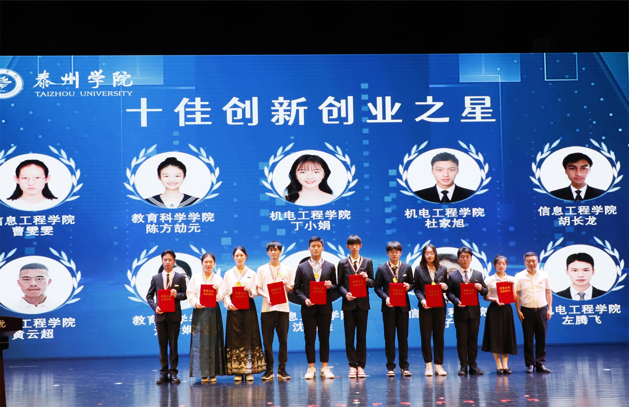 季赛向受表彰师生表示祝贺,对学校创新创业工作取得的成绩表示肯定,并对创新创业教育提出三点要求:一是要以创新创业教育助推人才培养工作高质量发展,各部门要形成合力,构建并完善创新创业交流平台,有效整合校内外资源,切实开展“一院一品”建设;二是全校师生弘扬“四敢”精神,坚持创新驱动,敢于担当作为,主动聚焦社会、经济和民生领域的关键问题,努力用自己的专业和智慧服务于国家和人民,彰显泰院师生的果敢与担当;三是各学院要强化创新创业教育的品牌效应、平台功能和引领作用,深入推进思政教育、专业教育与创新创业教育的融合,引导学生进一步提升创新创业意识、树立创新创业理念、增强创新创业能力。季赛希望同学们坚定理想信念,坚持创新创业,坚定奋斗目标,踔厉奋发、勇毅前行,奋力挥洒青春汗水,向着全面建设社会主义现代化国家新征程出发。