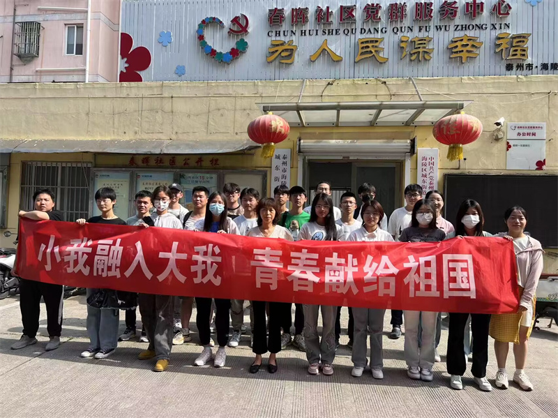 为引导和帮助广大青年学生上好与现实相结合的“大思政课”,在社会课堂中“受教育、长才干、作贡献”,医药与化学化工学院22级环境工程专业团支部与泰州市海陵区春晖社区进行结对开展志愿服务活动,为社区建设贡献青春力量。