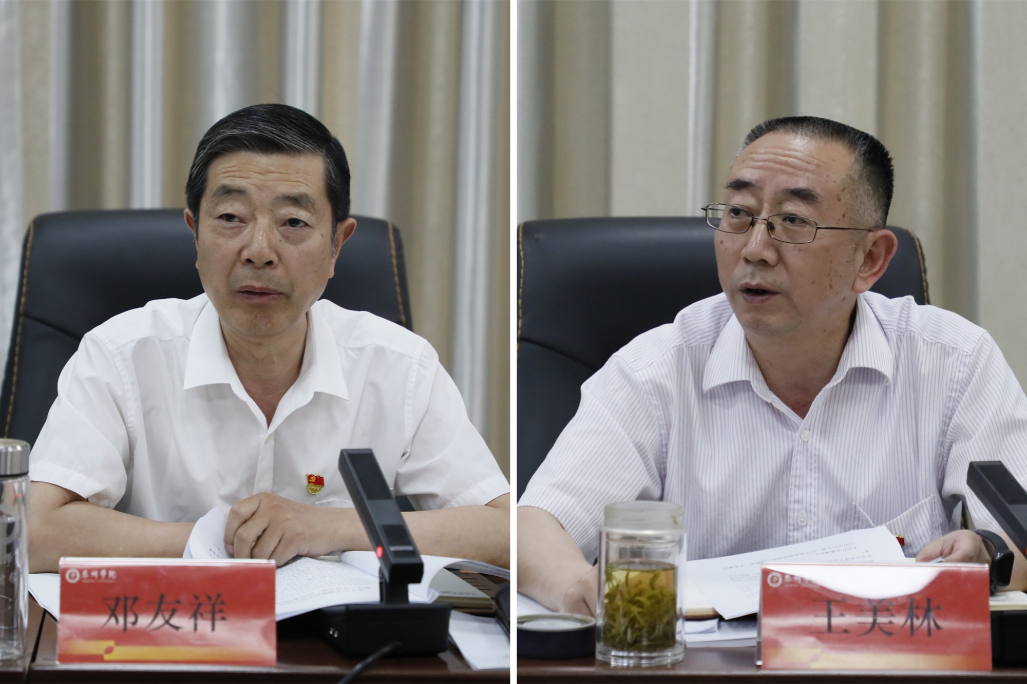 徐向明重点传达学习了省委常委、组织部部长沈莹同志在省属高校院所主题教育工作座谈会上的讲话精神。