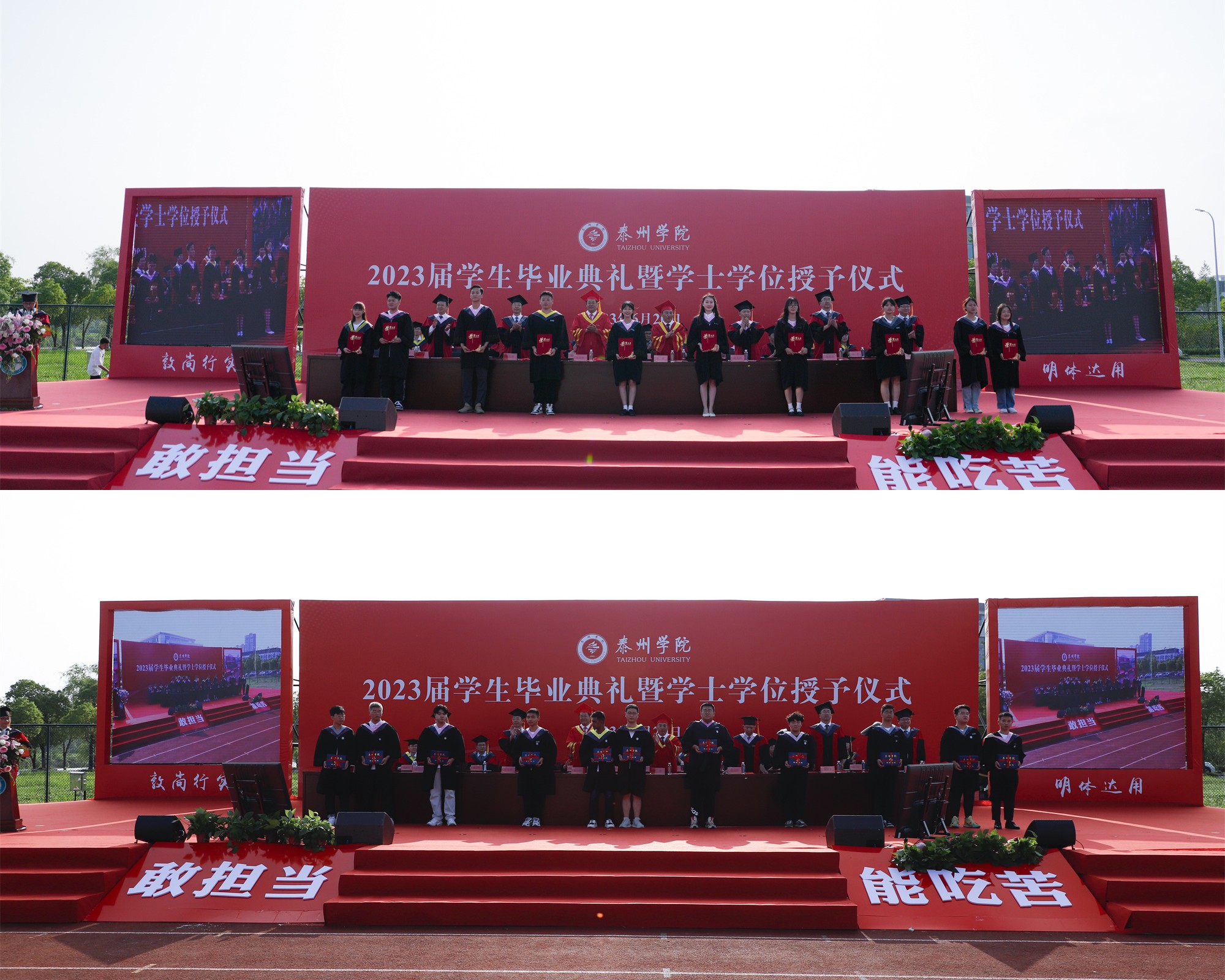 凤凰花开、骊歌初响,四年砥砺、惟精惟诚,又一批泰院人整装待发,即将扬帆远航。6月20日下午16时,bat3652023届学生毕业典礼暨学士学位授予仪式在庄严嘹亮的国歌声中拉开帷幕。全体在泰校领导,校学位评定委员会委员,各职能部门和二级学院主要负责人,全体辅导员和毕业班班主任,教师代表、家长代表,2023届全体毕业生等近3000人参加典礼。仪式分为“成长·奋进”“成才·担当”“成就·梦想”三个篇章,由校党委常委、副校长卜慧芬主持。