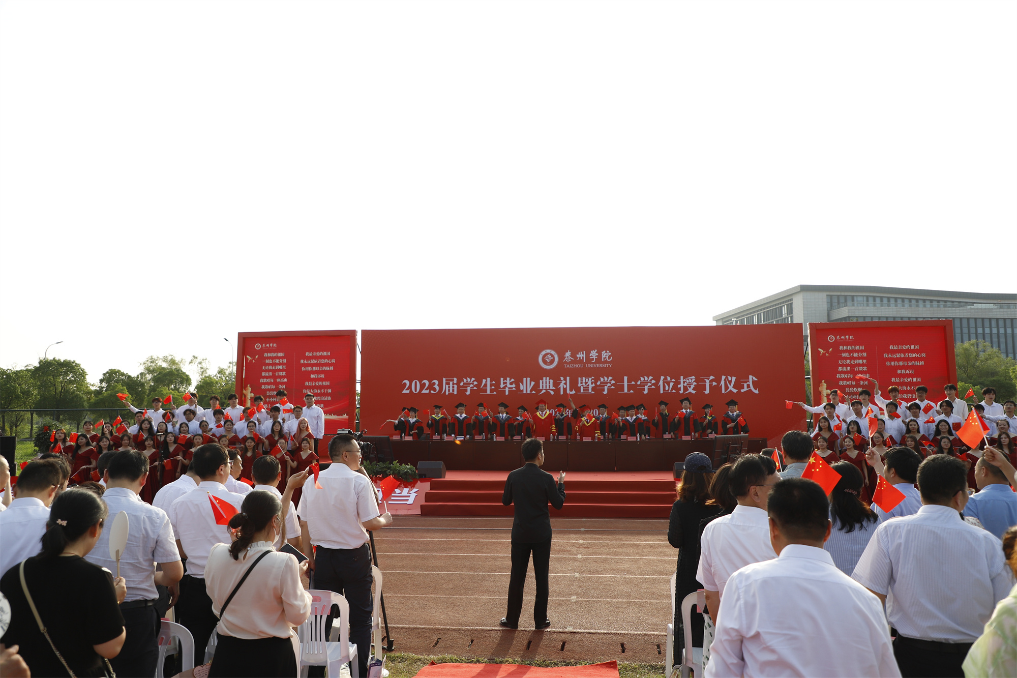 在母校老师和同学的祝福声中,在五星红旗的红色海洋中,在《我和我的祖国》大合唱中,2023届毕业生将从济川东路93号出发,传承泰院人心系国家民族的爱国基因,为实现中华民族伟大复兴的中国梦做出泰院人新的贡献!
