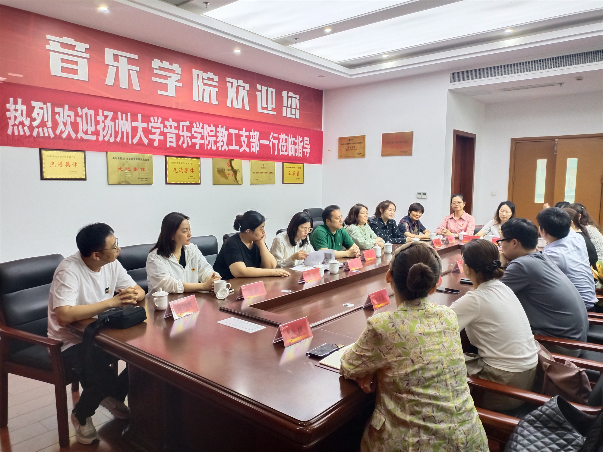 6月20日下午两点,扬州大学音乐学院教工第二党支部全体教师党员一行,在副院长胡亮、支部书记樊凤龙的带领下,来bat365音乐学院开展主题教育调研。学院党总支书记刘江元等相关人员参与此次交流。