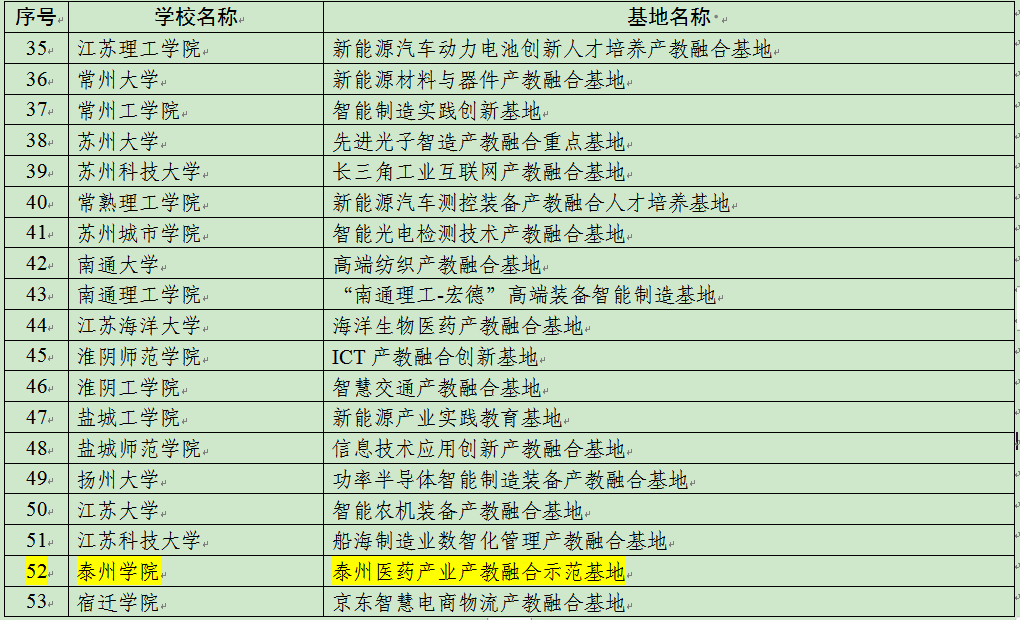 近日,江苏省教育厅公布了2023年省级产教融合重点基地建设点遴选结果(苏教办高函〔2023〕18号),bat365申报的“泰州医药产业产教融合示范基地”获批立项。