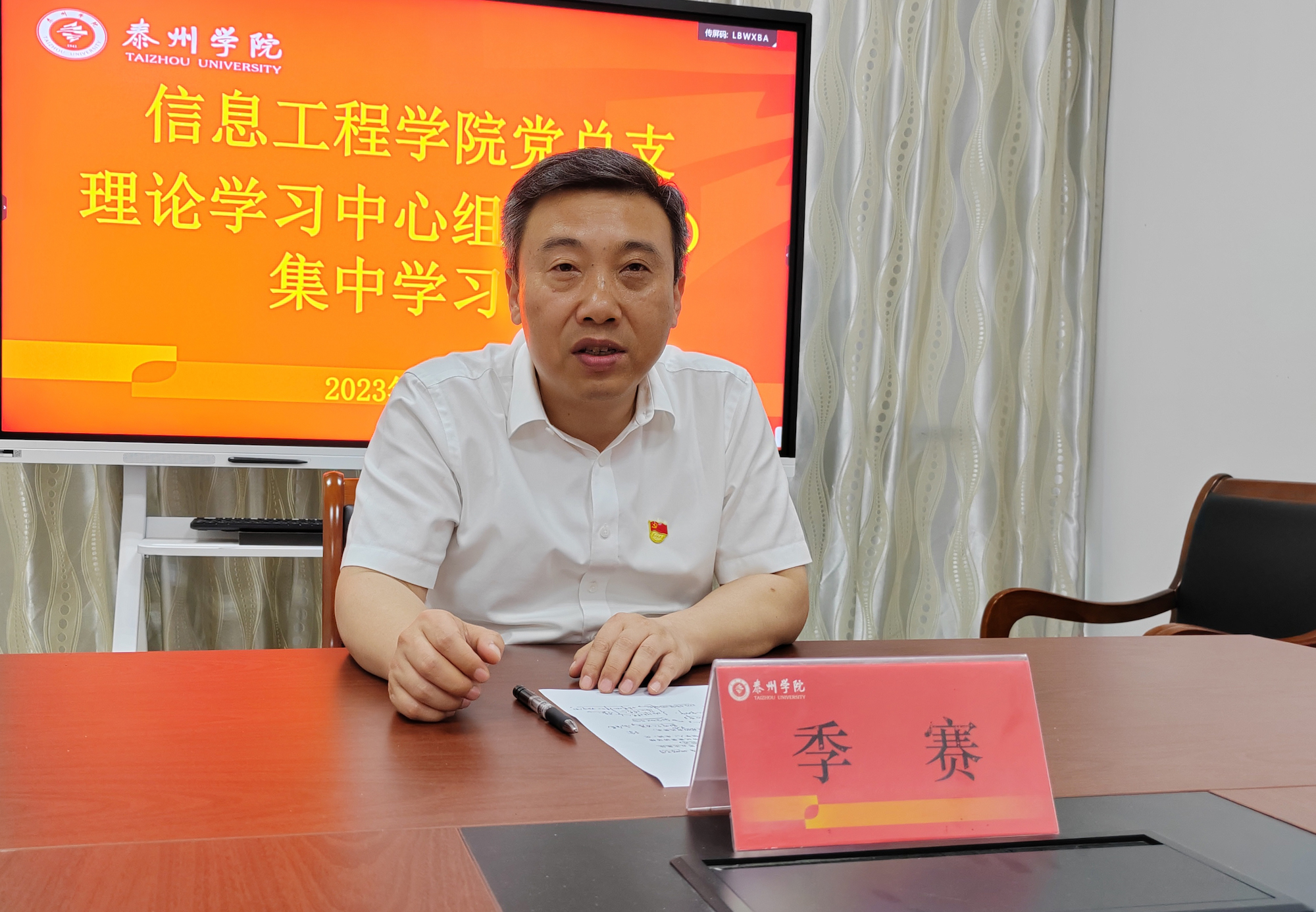 7月4日下午,信息工程学院党总支在D2321进行理论中心组扩大学习,校党委副书记、校长季赛到会巡学旁听,学院党总支书记朱诚主持本次学习,学院党总支委员和各支部书记参加学习。