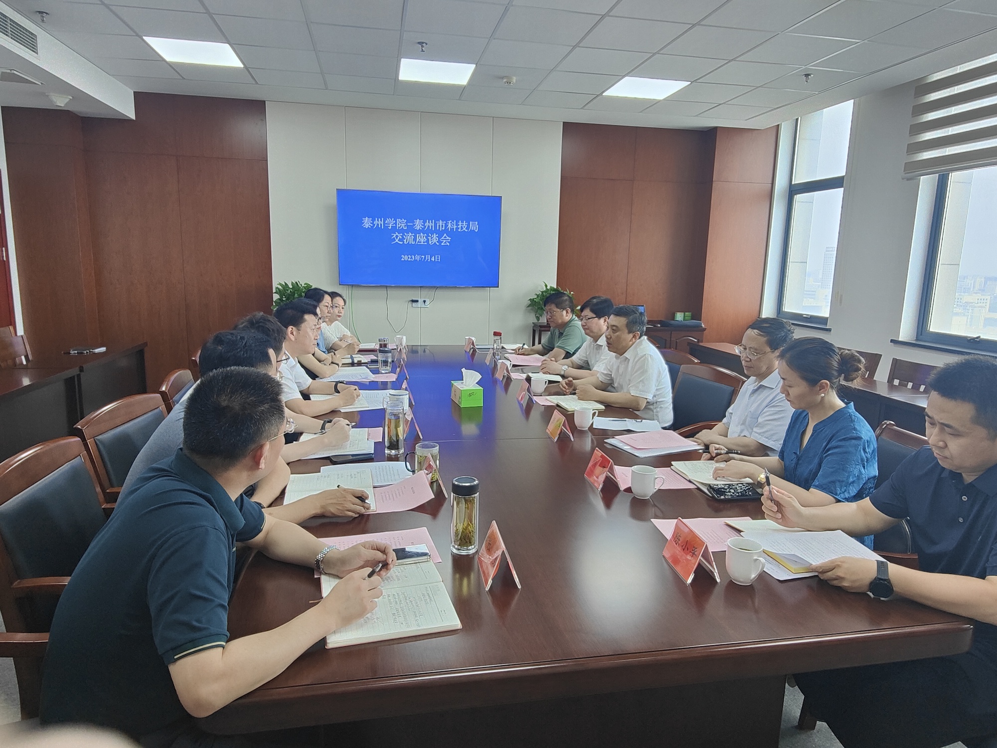 泰州市科技局局长包亚、副局长张光杰及相关处室负责人,校发展规划处、教务处、科研处负责人参加交流座谈会。
