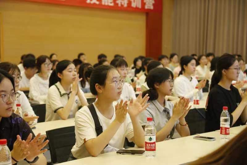来自江苏省泰州中学的毕业生杨玉叶作为学员代表发言,表示将把握本次学习机会,努力提升技能的同时,增强对家乡文化的自信,铭记家乡培育之恩,不忘故土热情与温度,将来为家乡建设奉献力量。随后,参会领导和嘉宾共同点亮开营仪式启动球,并与特训营学员们合影留念。