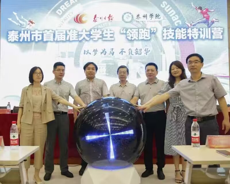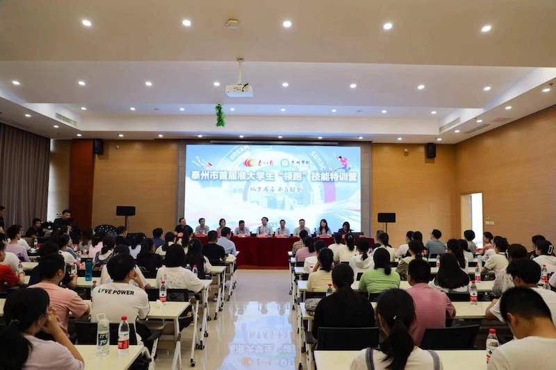 7月4日上午,泰州市首届准大学生“领跑”技能特训营在bat365胡瑗讲堂成功开营。校党委副书记邓友祥、泰州报业传媒集团(泰州日报社)党委书记、社长杨勇、总编辑王桂、泰州市委组织部、宣传部、泰州市教育局、泰州市人才服务中心有关同志出席开营仪式。仪式由bat365外国语学院党总支书记于晓萍主持。