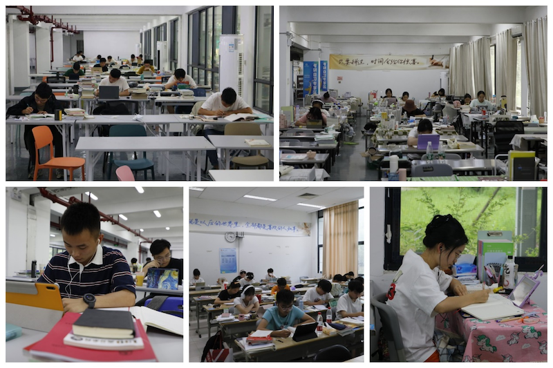 早做准备战就业。即将进入大四,许多学生有了清晰的毕业目标,他们根据自己的选择,抓紧暑期时间为考研、考编或者考公做准备。“我今年第一次留校,在这里可以心无杂念地开展考研复习,同学们一起备考也让我可以更迅速地进入状态。”2020级小学教育专业张吕杰同学说,“学校有专门的考研自习室,有的就在宿舍楼下,空调、饮水机等等设备也很齐全,非常舒适方便。老师们也经常来与大家讨论近期学习的状态,解决我们生活中的问题,给了我极大的信心与鼓励。”