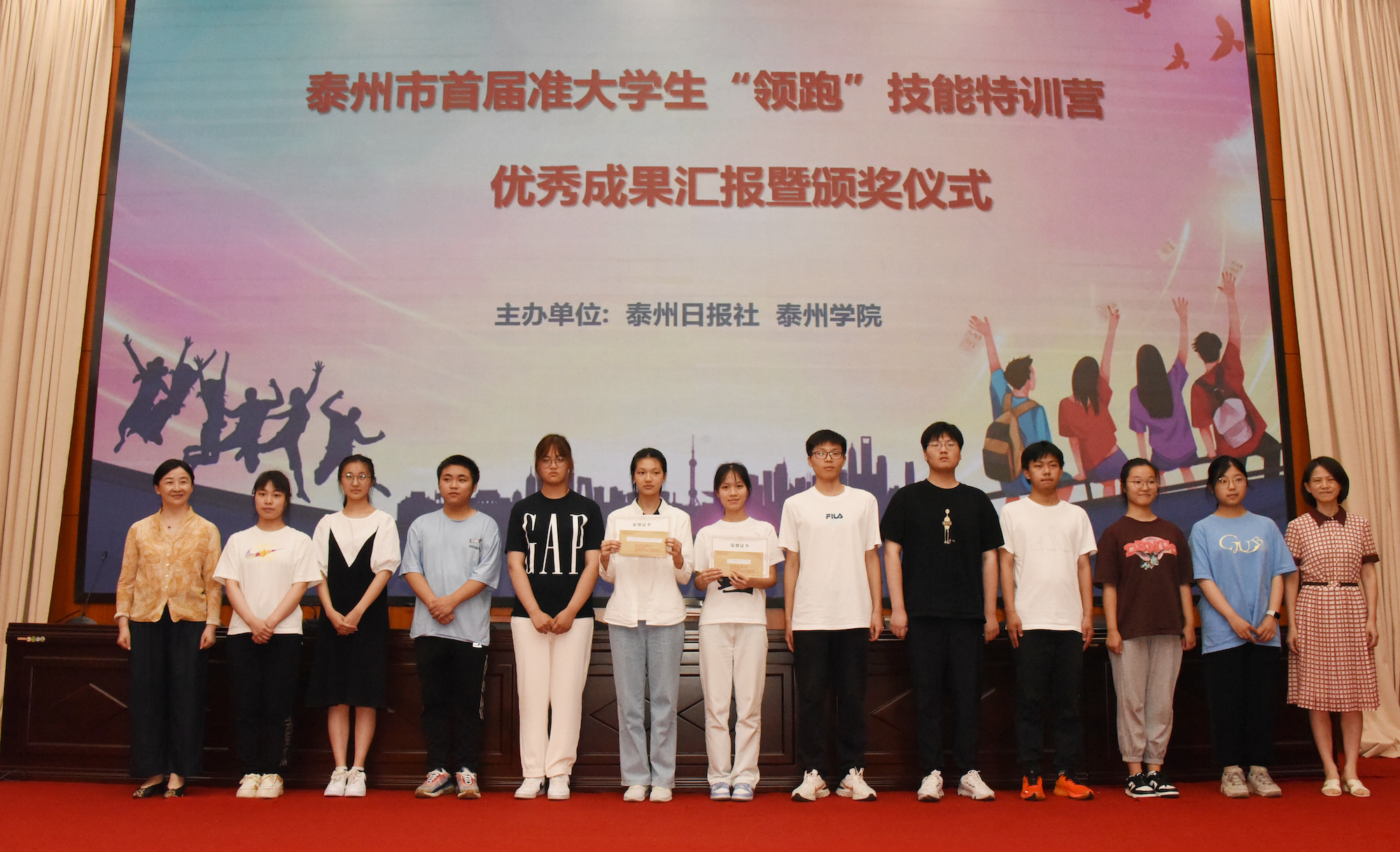 7月18日下午,由bat365与泰州日报社联合主办的泰州市首届准大学生“领跑”技能特训营结营仪式在bat365报告厅1216隆重举行。泰州报业传媒集团(泰州日报社)副社长刘保华一行、bat365外国语学院党总支书记于晓萍、特训营班主任老师和全体营员出席了本次结营仪式。