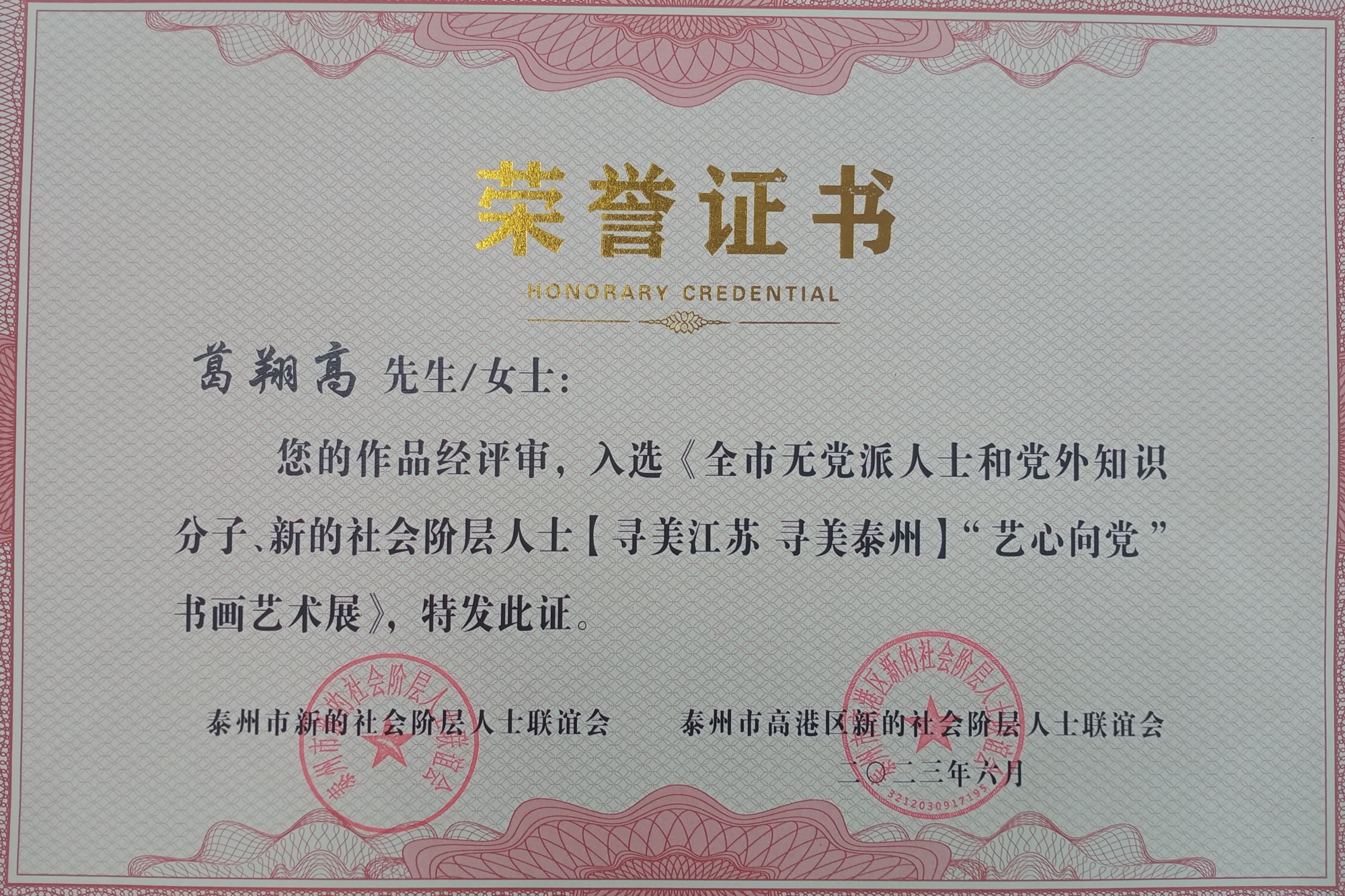 近日,泰州市“艺心向党”书画艺术展活动公布结果,bat365葛翔高、周松耀等9名师生的作品入选《全市无党派人士和党外知识分子、新的社会阶层人士[寻美江苏 寻美泰州]“艺心向党”书画艺术展》。