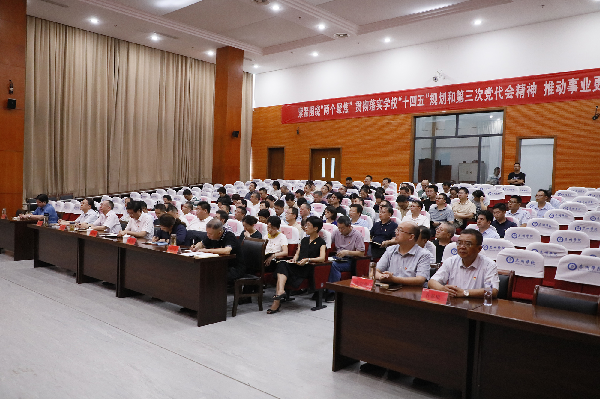 在泰校领导、全体中层干部参加会议。